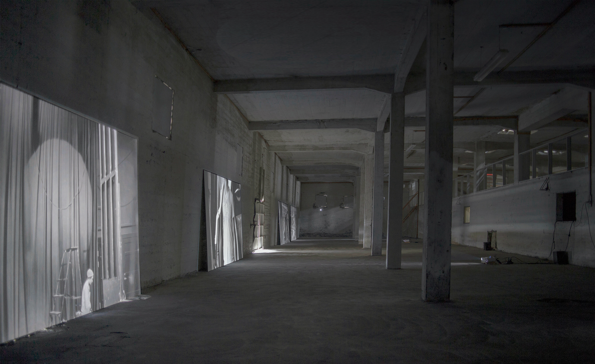 Light is the material in this Fragment of a line. Light, not only as the medium that carries the image to the surface, but as material in the same way as references, memories, ideas, and hard discs are materials. The raw space of the factory is a container for this material, and a good one at that, further strengthened by the November darkness. The inner space of the works becomes bodily and the light material. This is a mixing of references to the past, being lost in the desert, and a child’s game, into a sensual experience that is layered and complicated, but at the same time it brings forward important questions, and as usual these are of the simple kind.