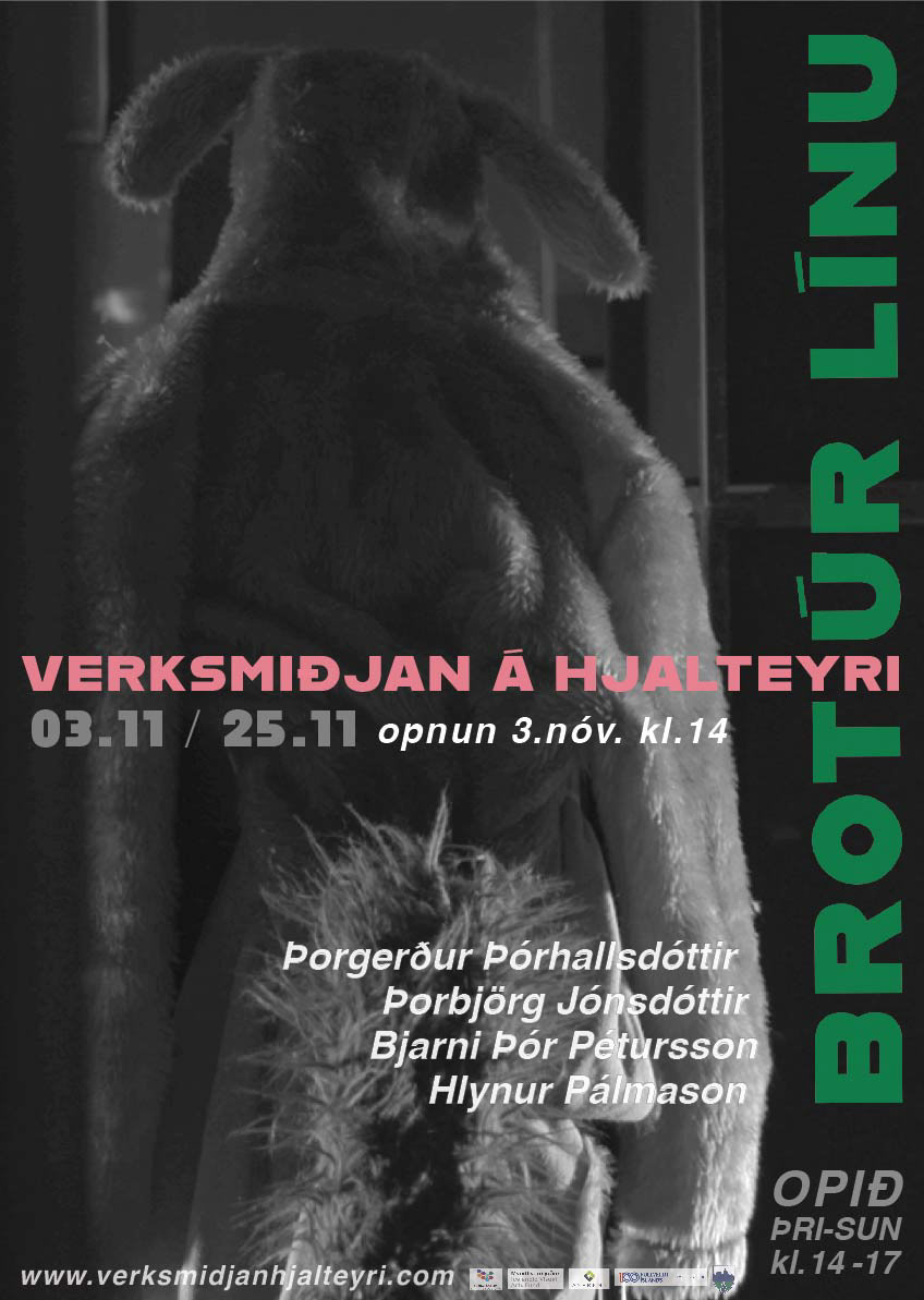 Sýningin Brot úr línu opnar í Verksmiðjunni á Hjalteyri í Nóvember. Á sýningunni eru vídeóverk eftir fjóra unga listamenn; Þorgerði Þórhallsdóttir, Bjarna Þór Pétursson, Hlyn Pálmason og Þorbjörgu Jónsdóttir. Listamennirnir eiga það sammerkt að taka sér stöðu á mörkum kvikmyndarinnar og vídeó miðilsins í verkum sínum. Þau sækja áhrif og úrlausnir í báðar þessar greinar og úr verður nýr og spennandi frásagnarmáti, sem einkennist af sterkri fagurfræði, leik með tæknilegar eigindir miðilsins og með sýningarrýmið í framsetningu verkanna. Verksmiðjan aflvæðist á ný, með ljósi og hljóði og rými verkanna hverfist saman við rými sýningarstaðarins.