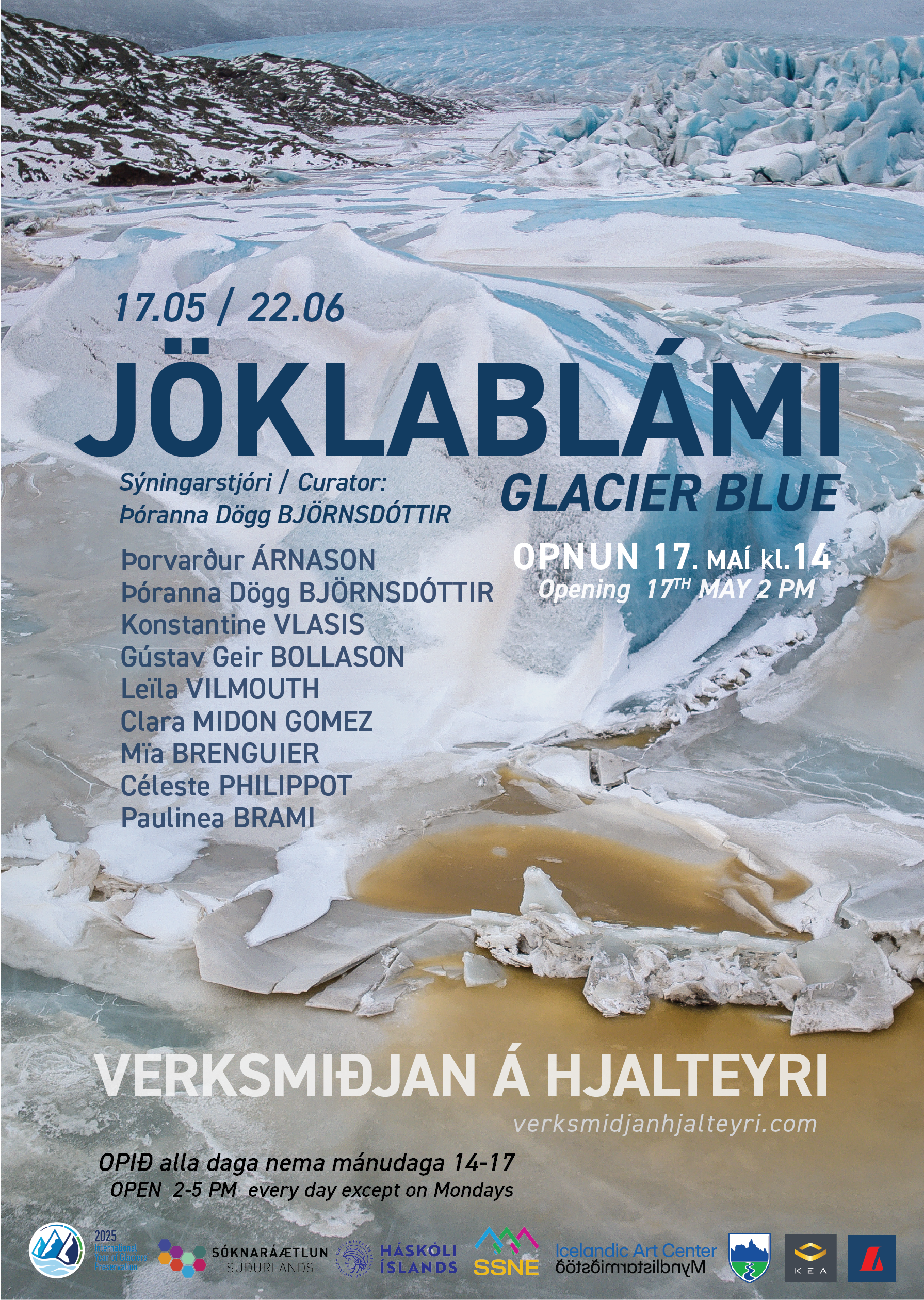 In addition to Þorvarður, the team behind Jöklablámi includes Þóranna Dögg Björnsdóttir, Konstantine Vlasis and Gústav Geir Bollason, as well as five young French artists, Leïla Vilmouth, Clara Midon Gomez, Mïa Brenguier, Céleste Philippot, Paulinea Brami, who are participating in an interdisciplinary workshop, organized in connection with the exhibition.