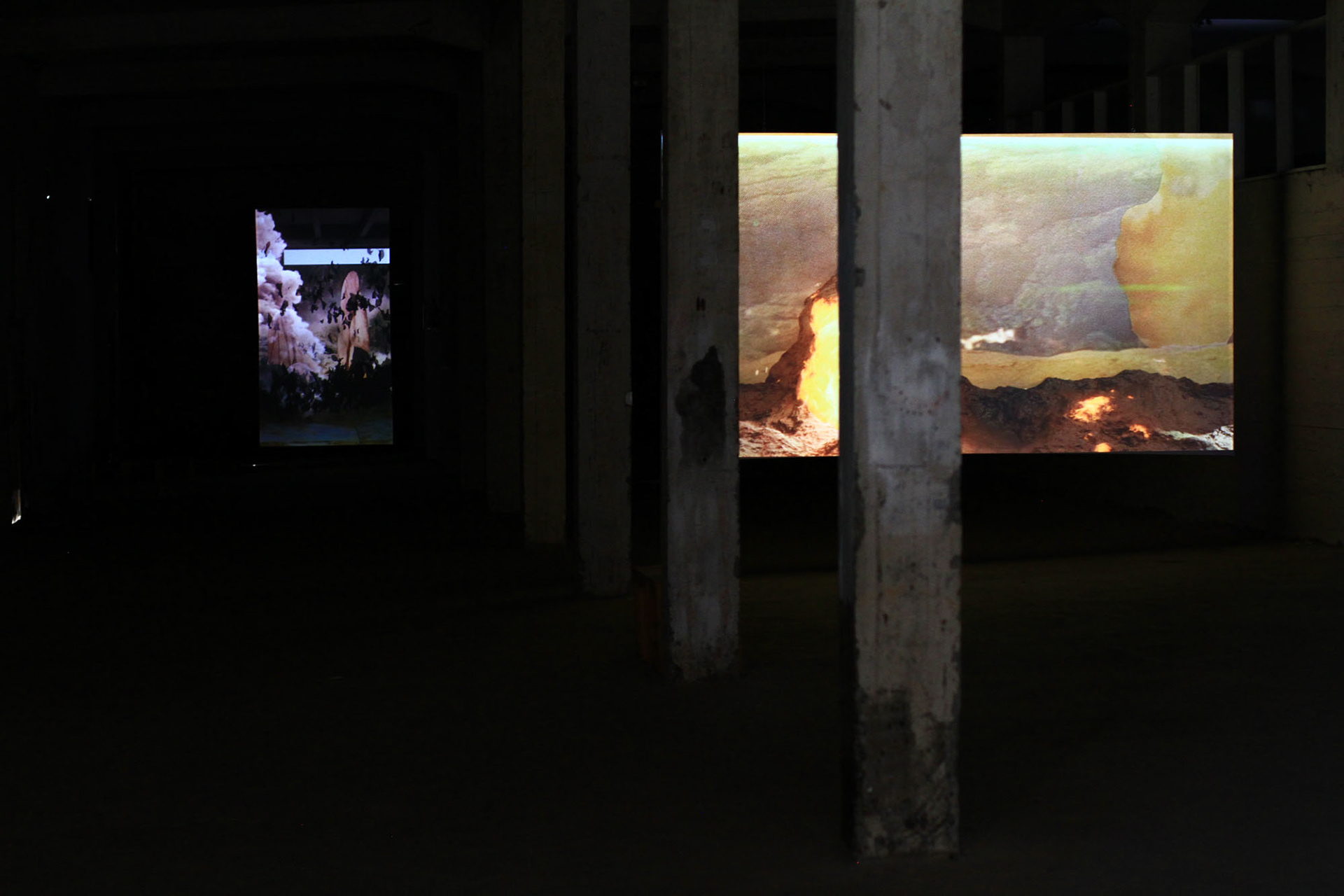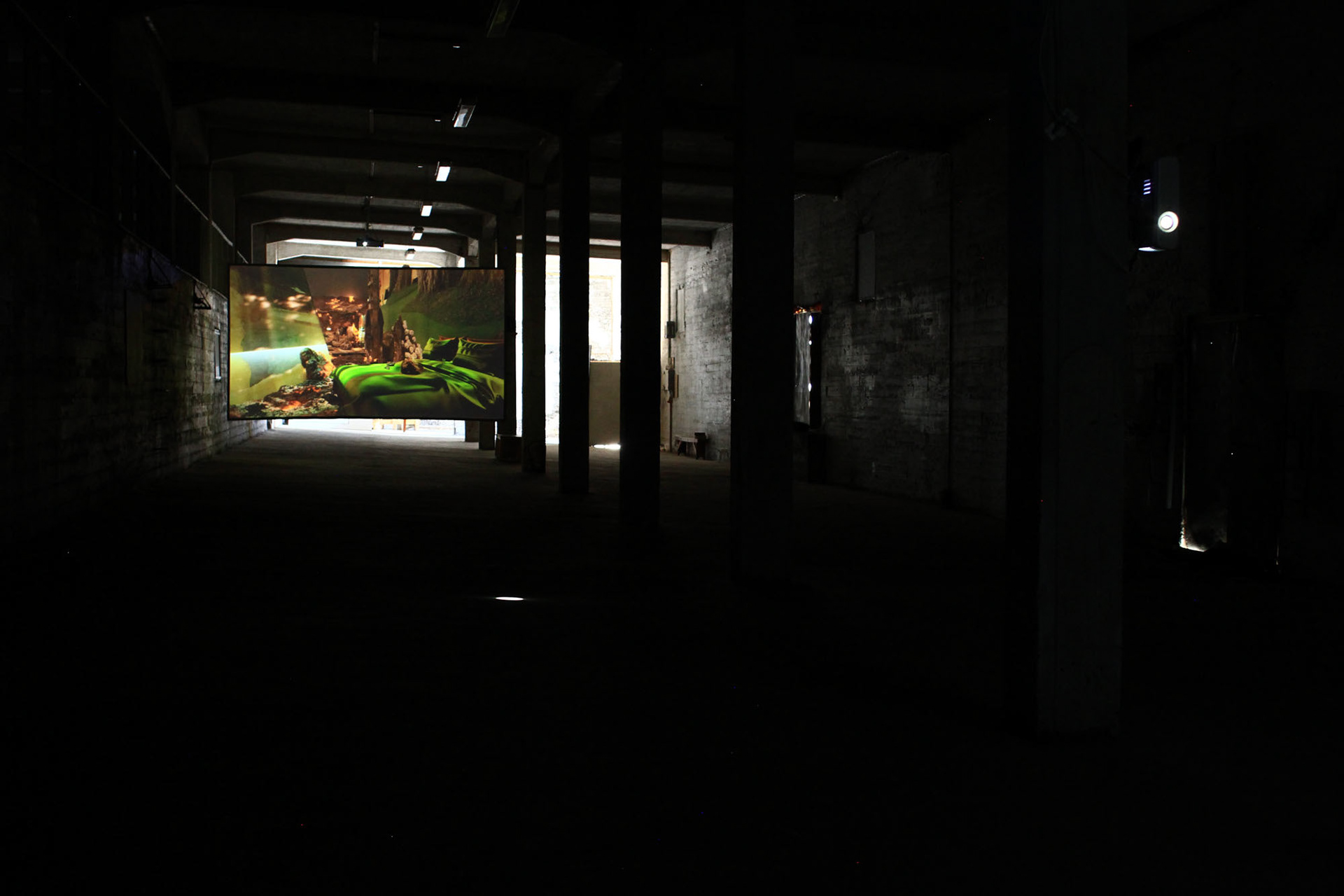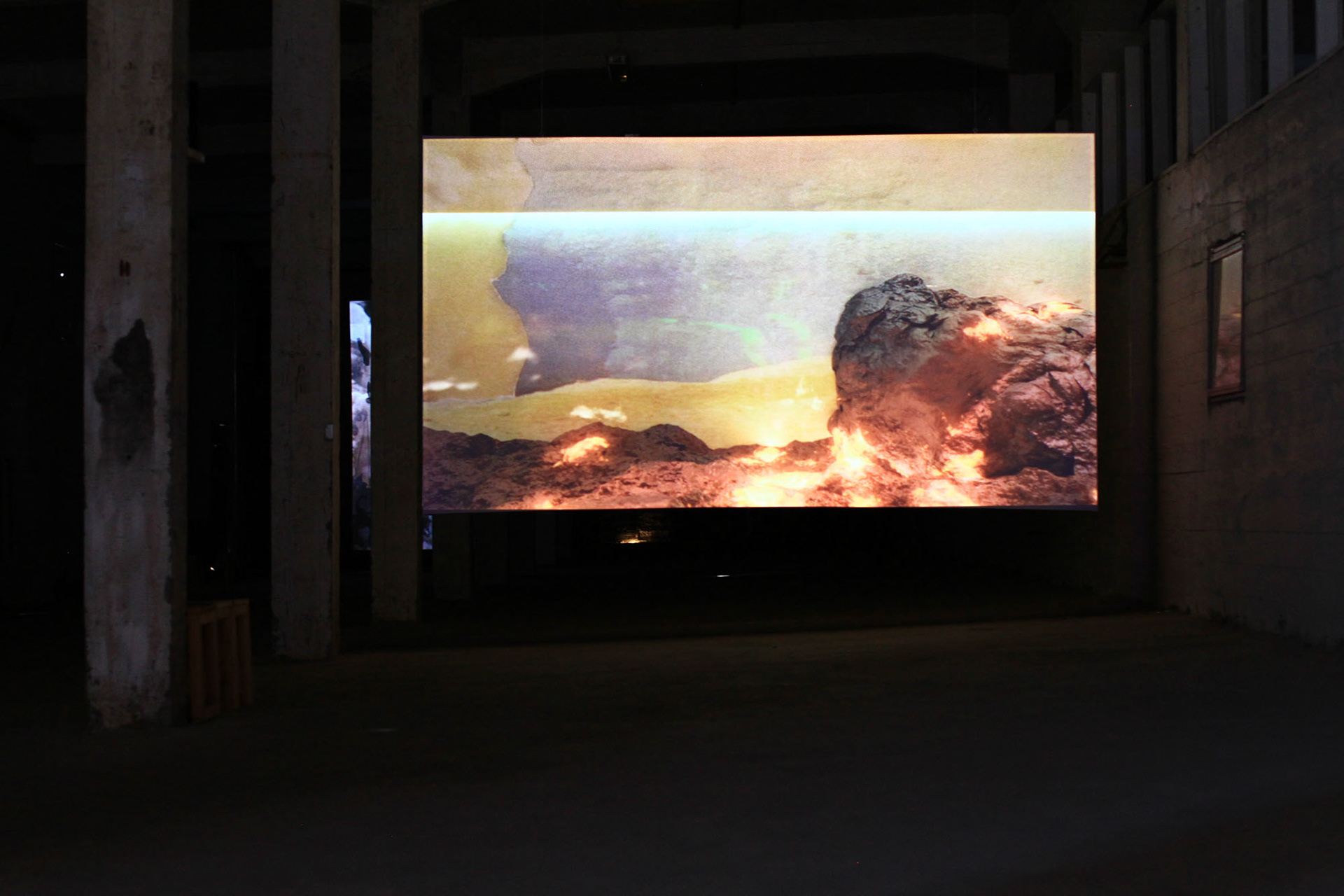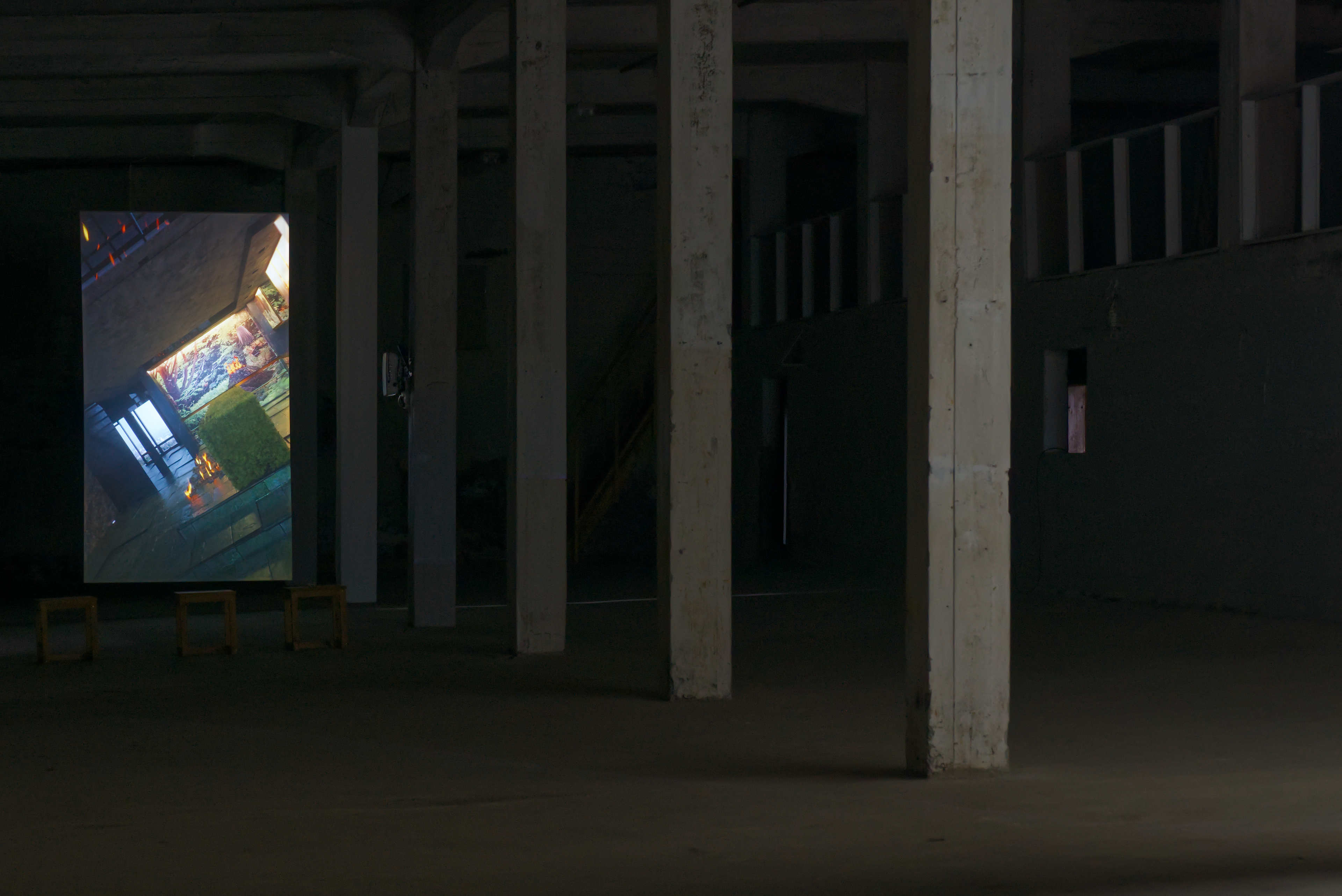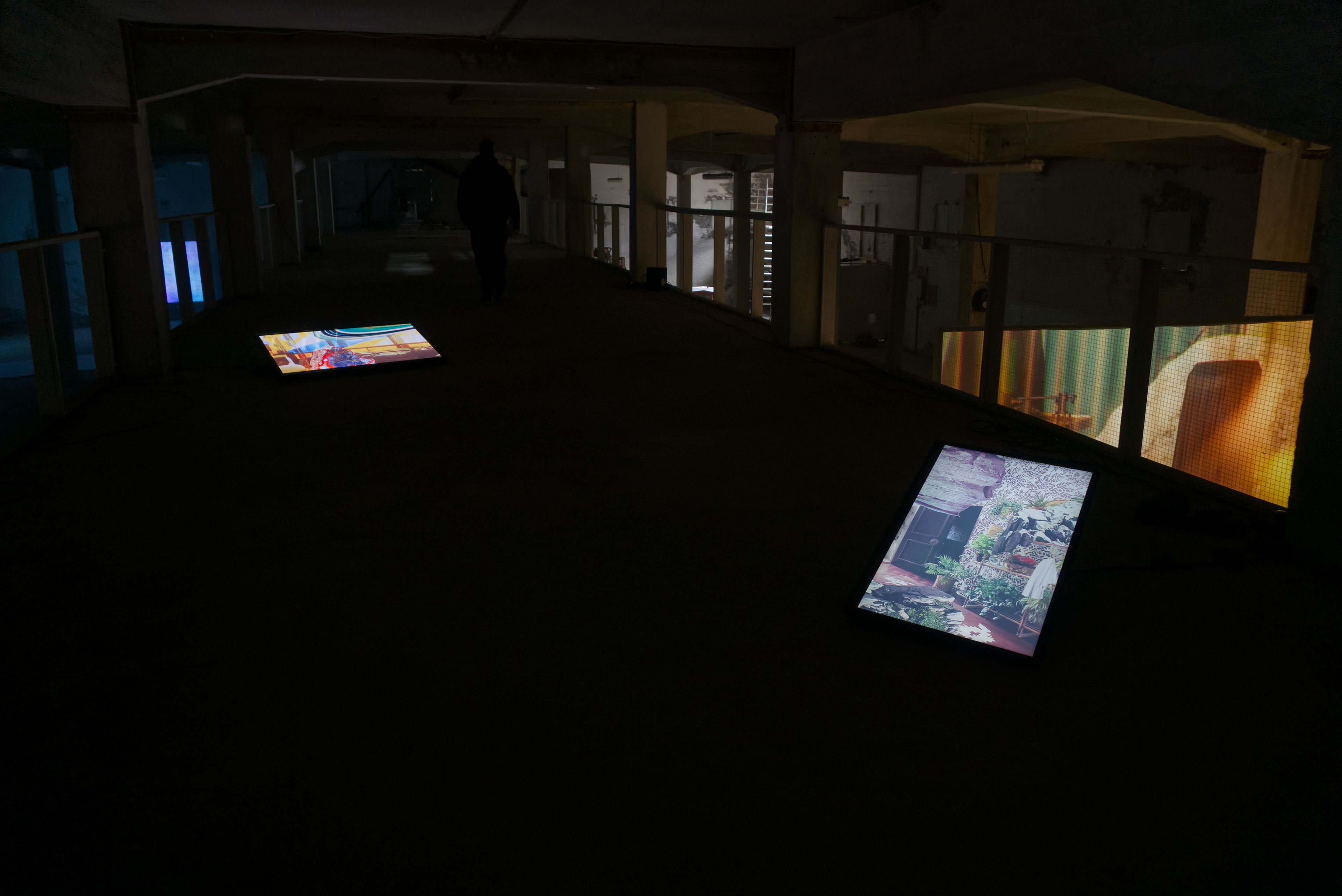 In this exhibition at Factory, featuring works by Julie Tremble and the duo Philippe-Aubert Gauthier and Tanya St-Pierre, an intentful environment of cinematic realism, created from a corpus of entirely digitally generated or manipulated images, rubs shoulders with the Icelandic landscape’s bucolic grandeur and the site’s imposing architecture. In an unsettling dialogue between reality and digital fantasy, Julie Tremble's realer-than-life images juxtapose the magnificent views framed by the building's openings, while Gauthier and St-Pierre's meticulously fabulated domestic spaces endeavor to embed themselves within the industrial history and ruggedness of the same site. In this reciprocal interplay of influence, the porosity of images, places, and the materiality of what we see sets the gaze in a kind of vertical time, where the accumulation of temporalities acts on our perception of the world and its representations. Such perception is also shaped and sometimes distorted by a noteworthy presence of sound.