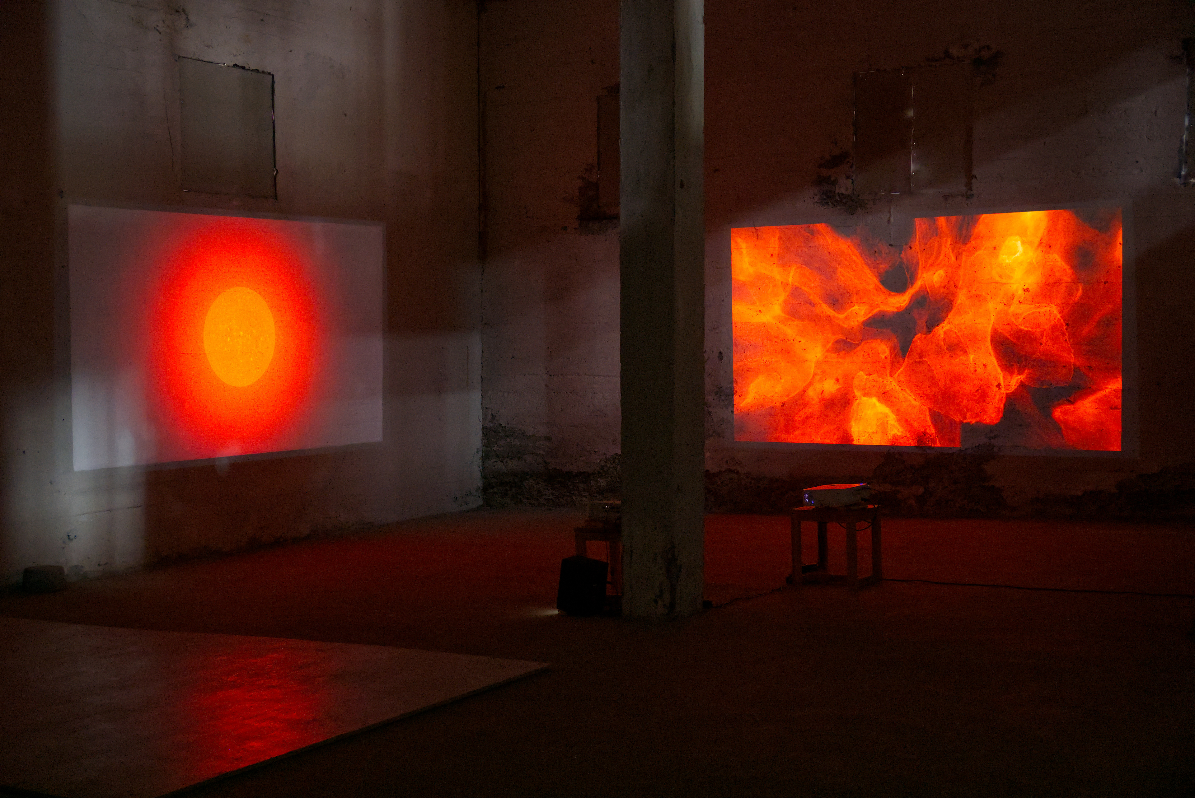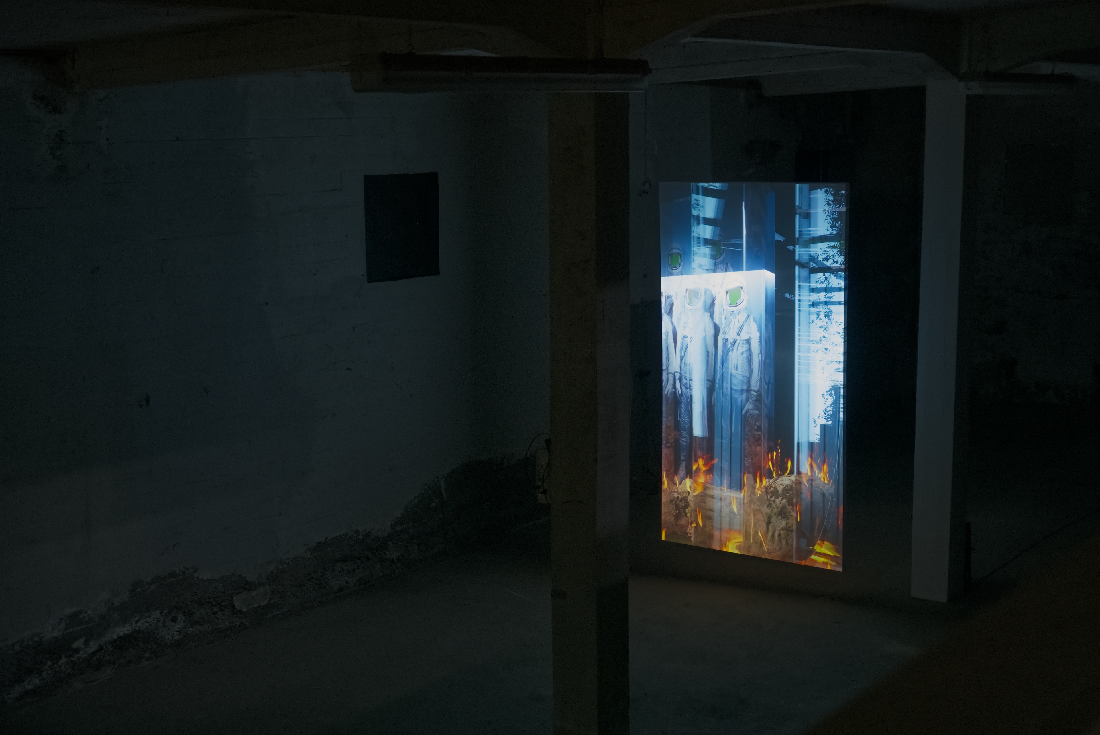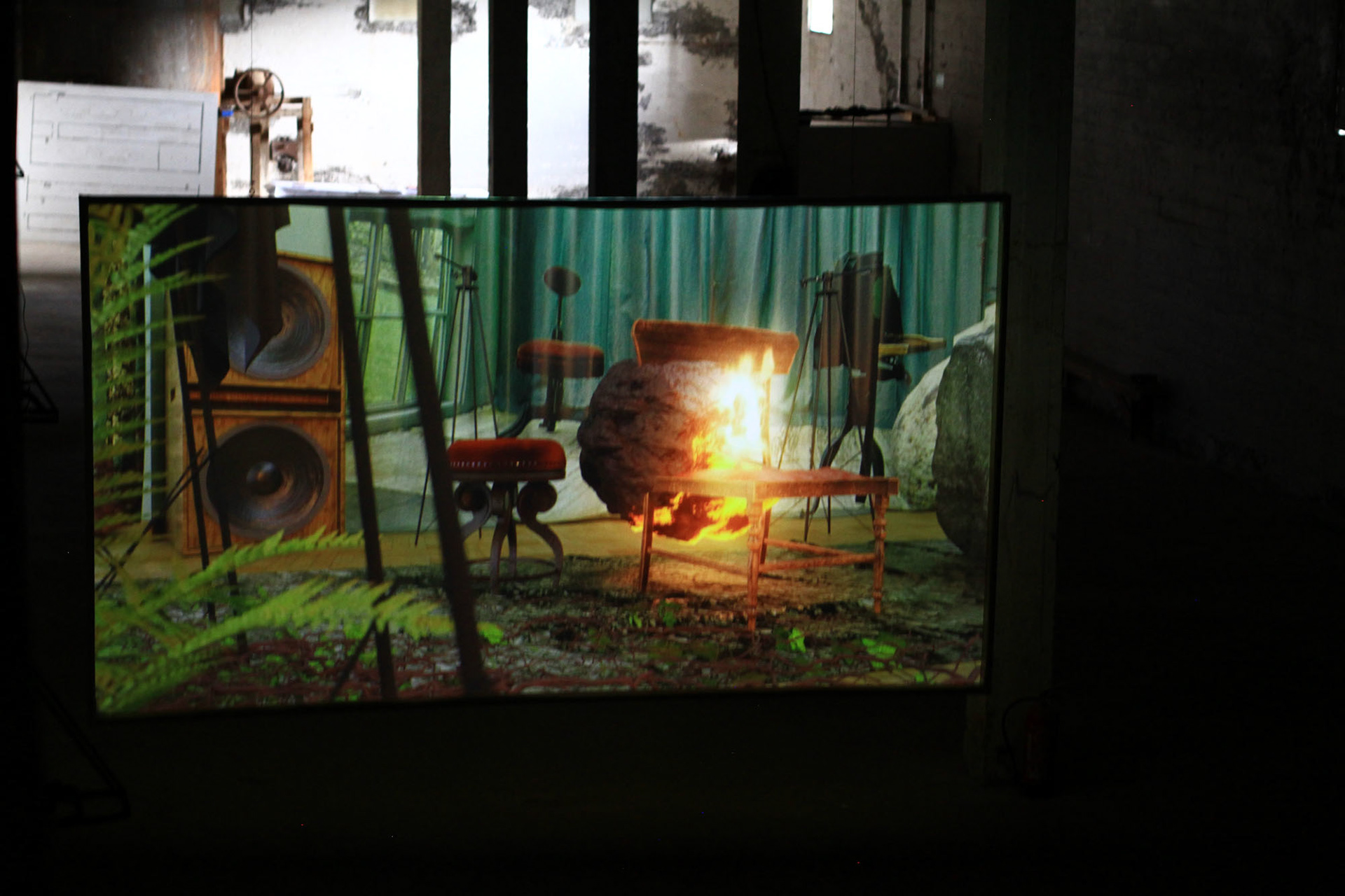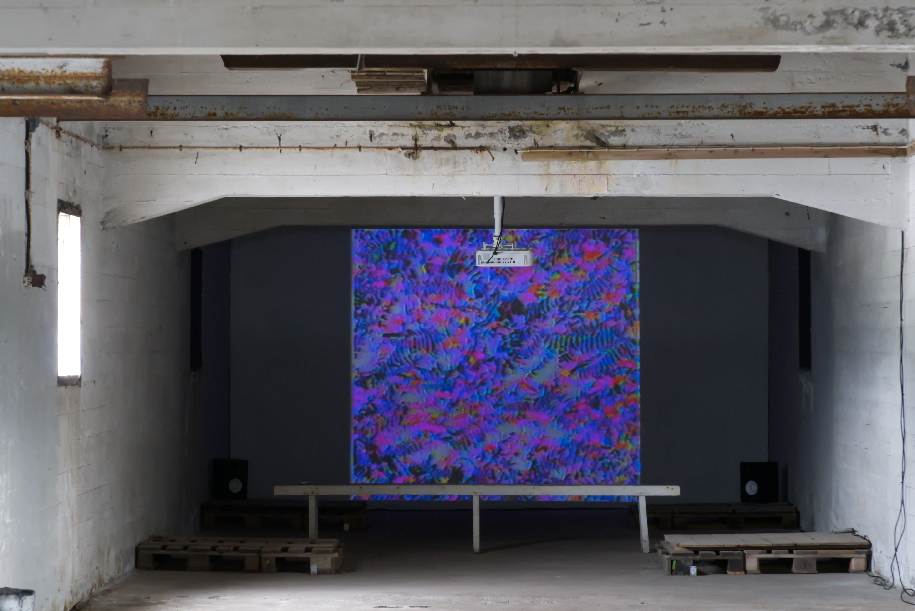 In this exhibition at Factory, featuring works by Julie Tremble and the duo Philippe-Aubert Gauthier and Tanya St-Pierre, an intentful environment of cinematic realism, created from a corpus of entirely digitally generated or manipulated images, rubs shoulders with the Icelandic landscape’s bucolic grandeur and the site’s imposing architecture. In an unsettling dialogue between reality and digital fantasy, Julie Tremble's realer-than-life images juxtapose the magnificent views framed by the building's openings, while Gauthier and St-Pierre's meticulously fabulated domestic spaces endeavor to embed themselves within the industrial history and ruggedness of the same site. In this reciprocal interplay of influence, the porosity of images, places, and the materiality of what we see sets the gaze in a kind of vertical time, where the accumulation of temporalities acts on our perception of the world and its representations. Such perception is also shaped and sometimes distorted by a noteworthy presence of sound.