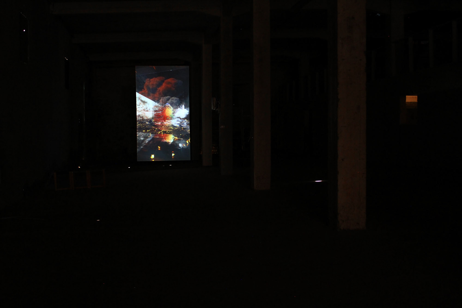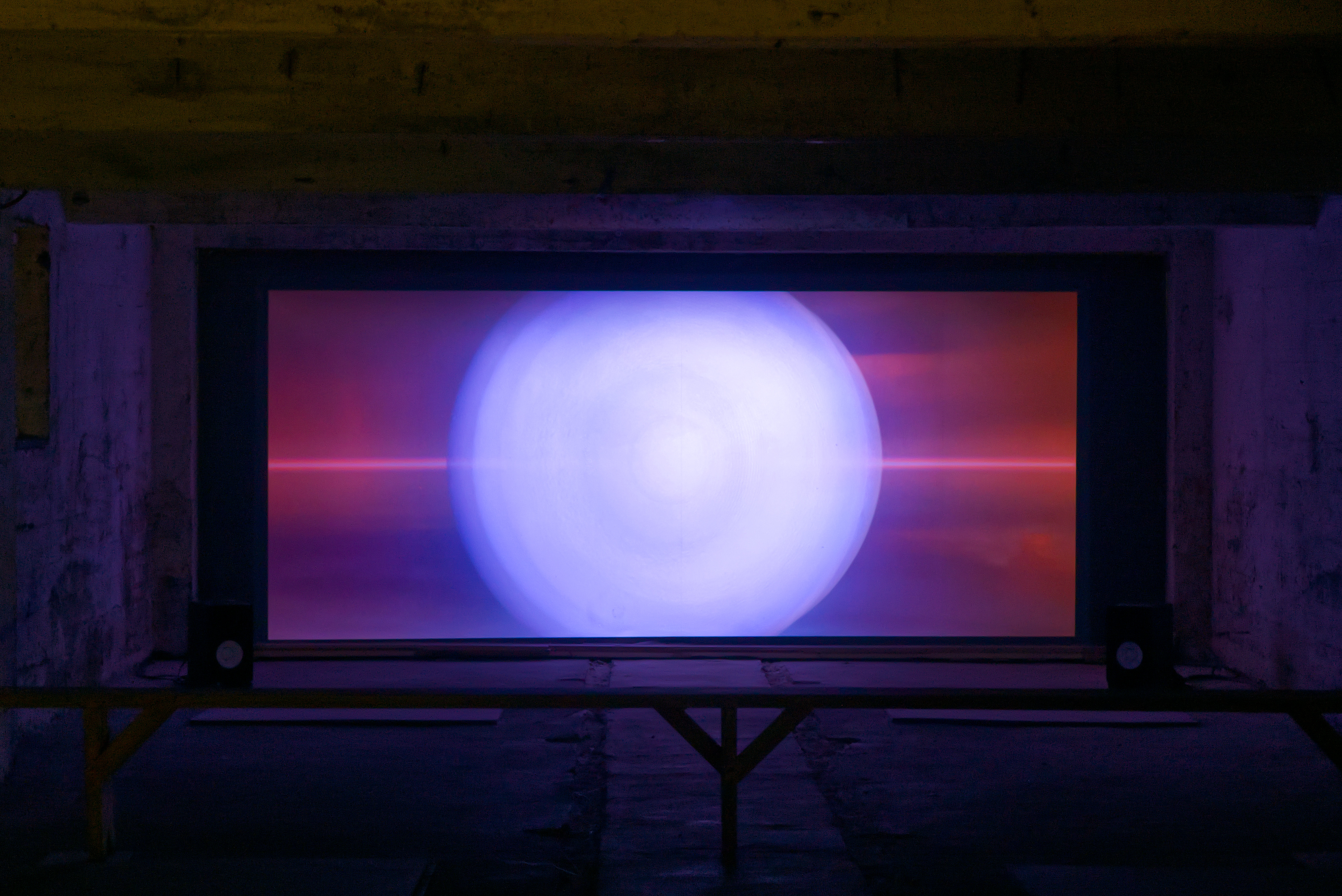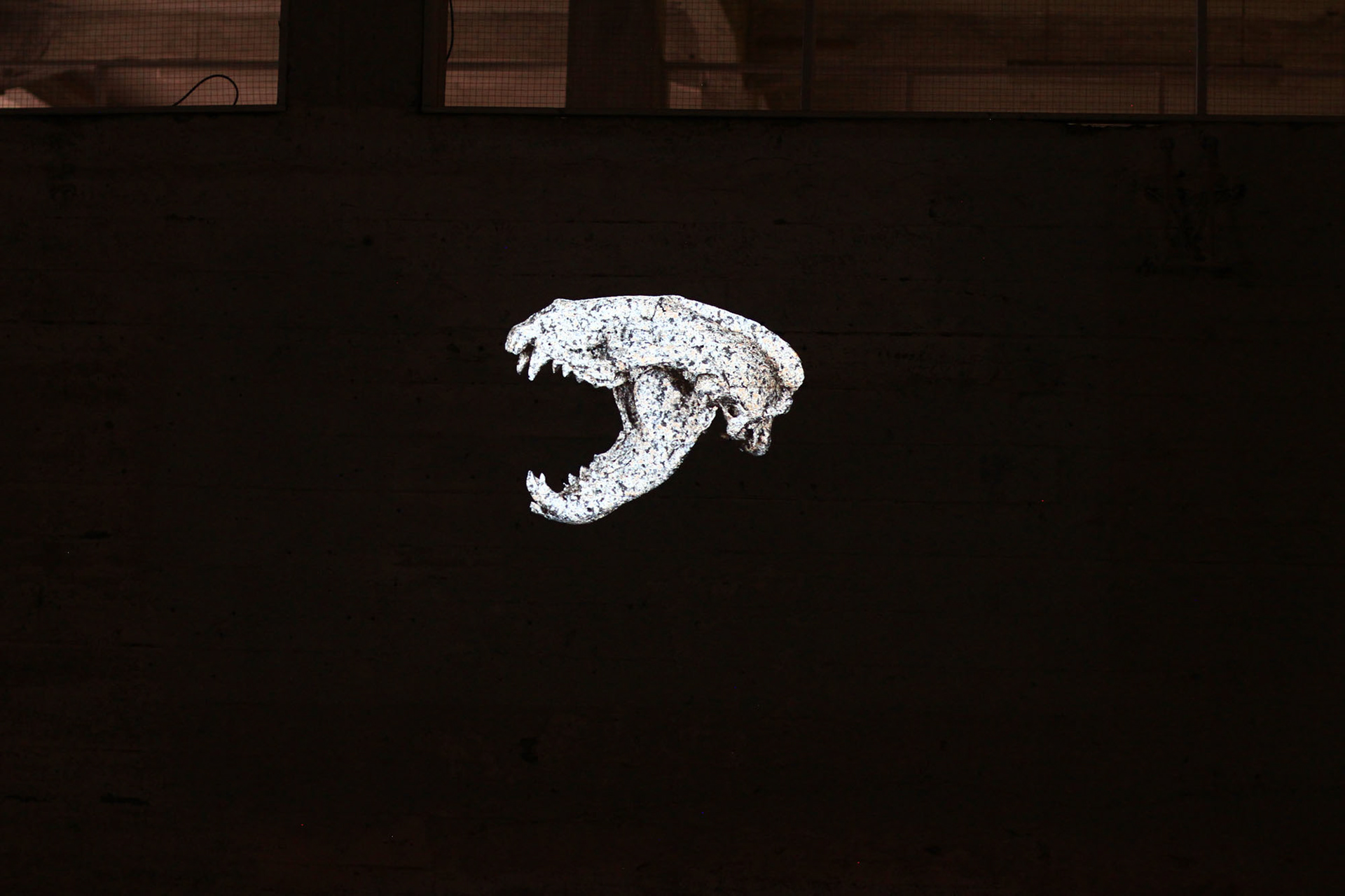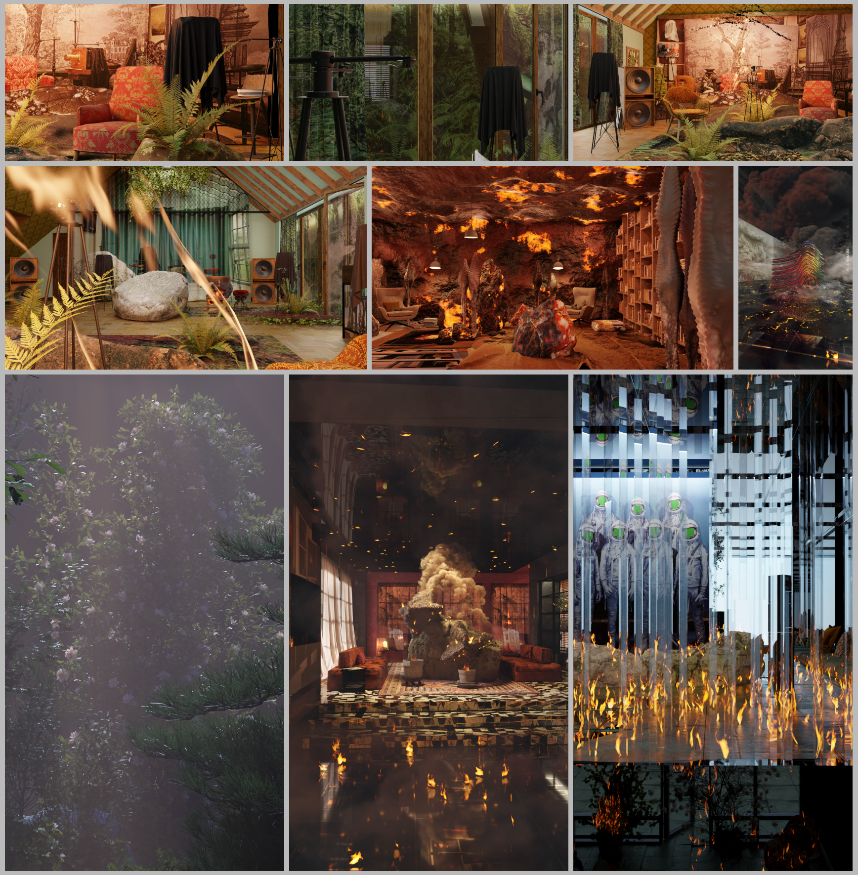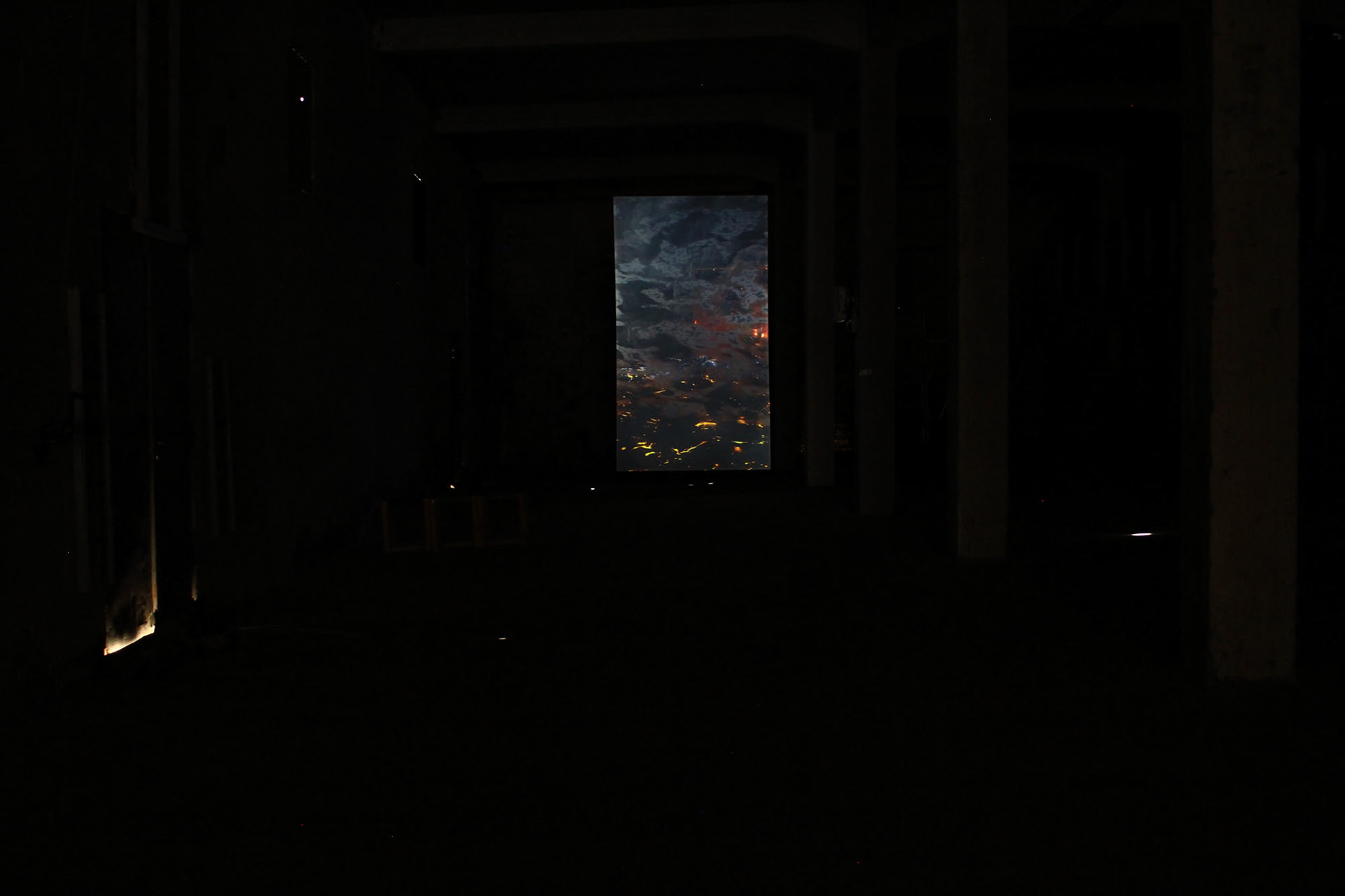 The Ultraviolet Catastrophe, for its part, responds to the virtual character of matter. Across three tableaux, majestic natural landscapes inspired by Northern Quebec’s wilderness are rendered with reverential photorealism. Observing the macro and the micro, the viewpoint voyages across hundreds of kilometres before a flickering disturbance pulls the image apart, diverging into an otherworldly landscape. Whether such a collapse is photonic or one of consciousness, those smallest elements – molecules, spectra – seen only through the lens of a microscope are made to appear radiating with absolute grandeur. In response to such happenstance encounters, the work's soundtrack, by composer and sound ecologist Rehab Hazgui, transposes quantum randomness onto the chance of sound.