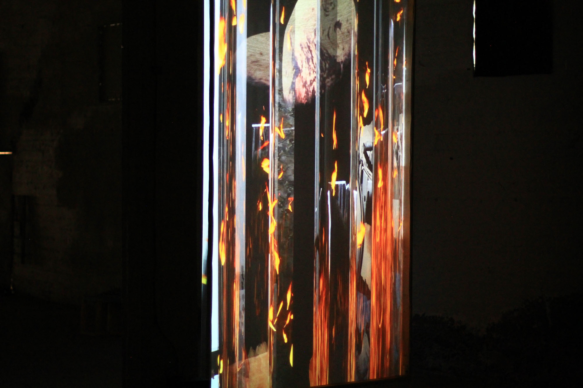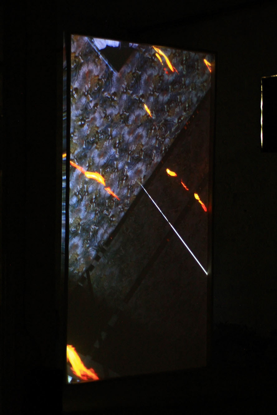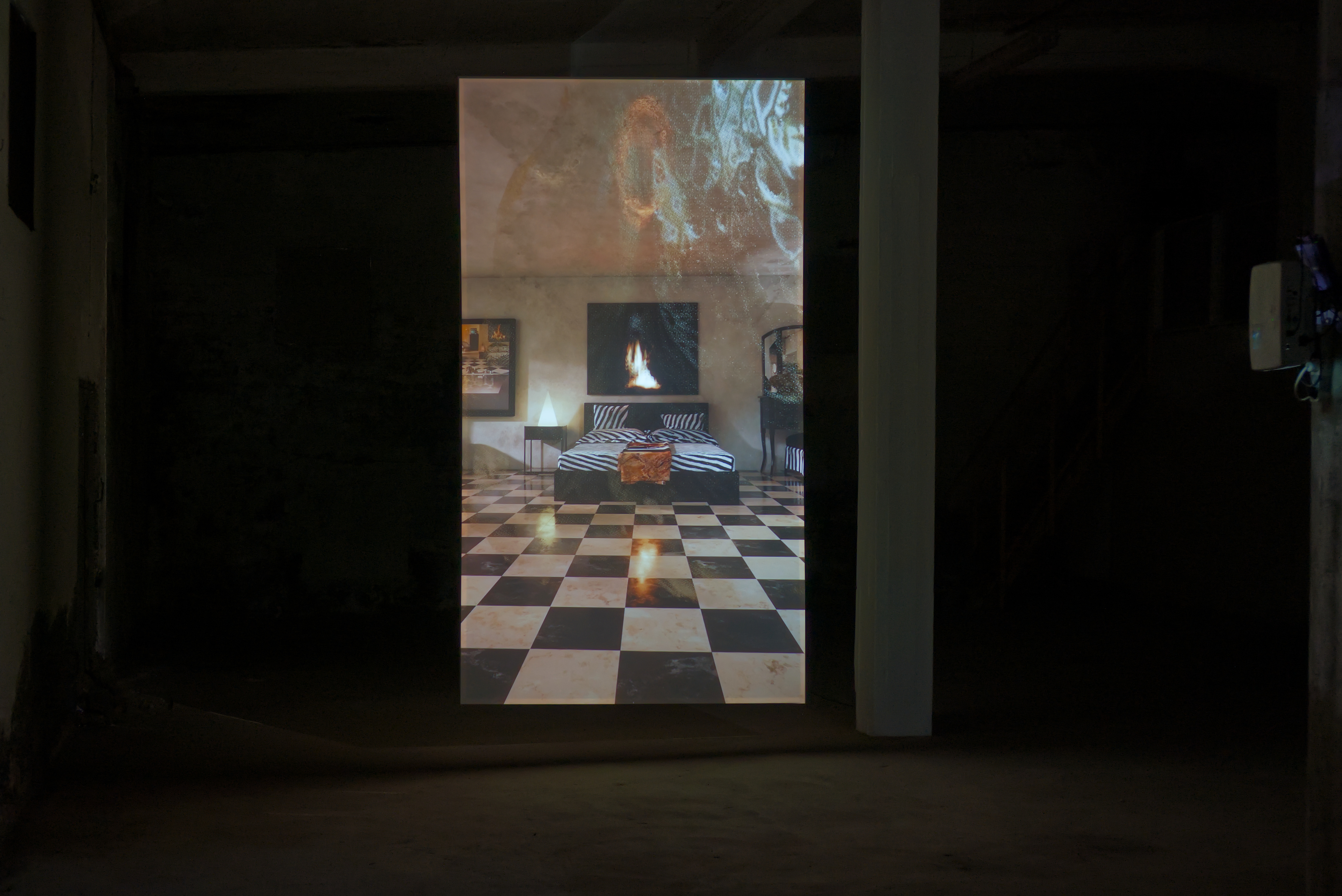 While the gaze hovers throughout the rooms, from the living room to the bedroom, images are transposed, folded onto one another, accumulating delicate strata of spectral auras whose composition sometimes betrays its source. We are hence brought forth into a hypereferentiality whose inferred dreamed-up climax forecasts a form of sublime collapse. The ambivalence of an unknown situation, amplified by a sonic universe whose timbre, intensity, and frequency multiply tensions and dramatic effects by synchronizing with the images.