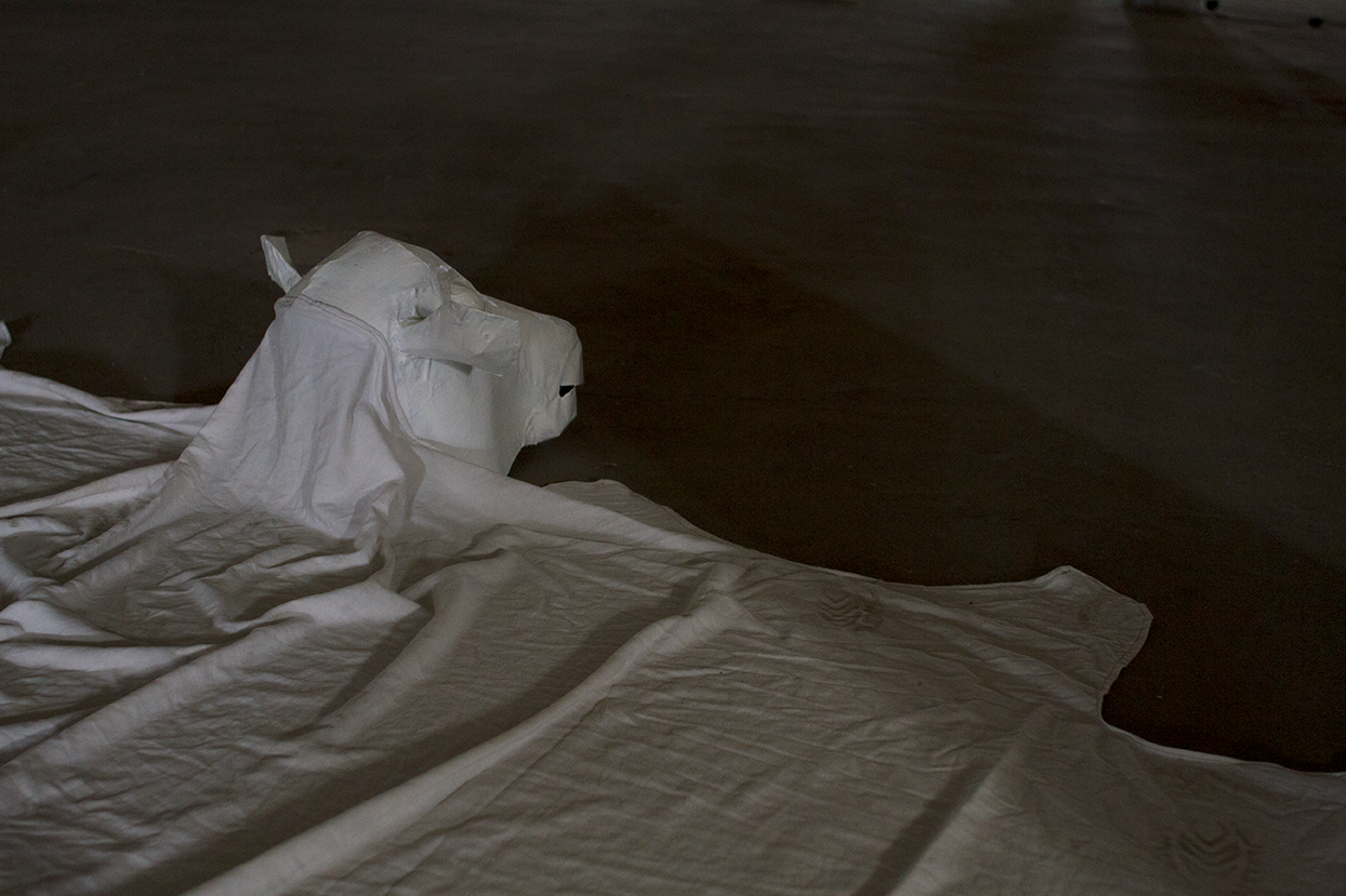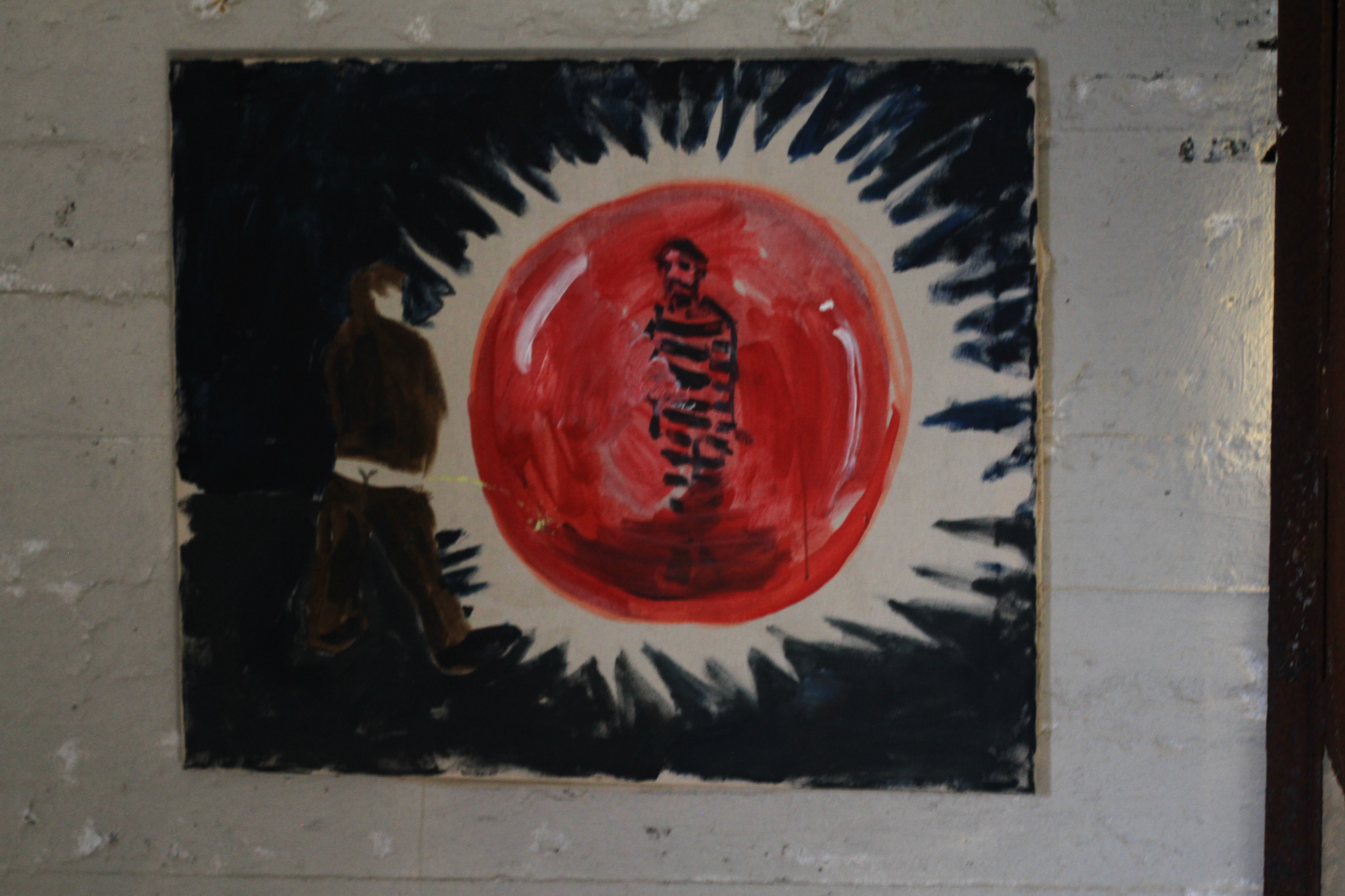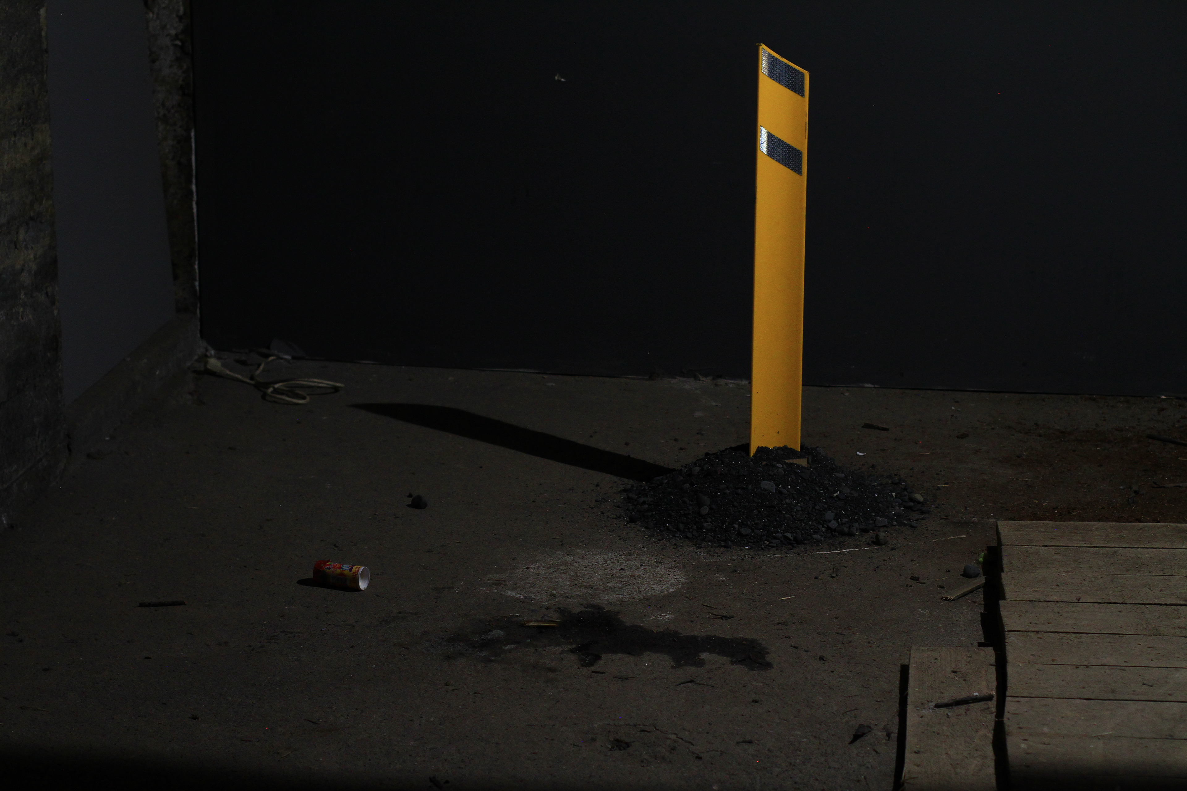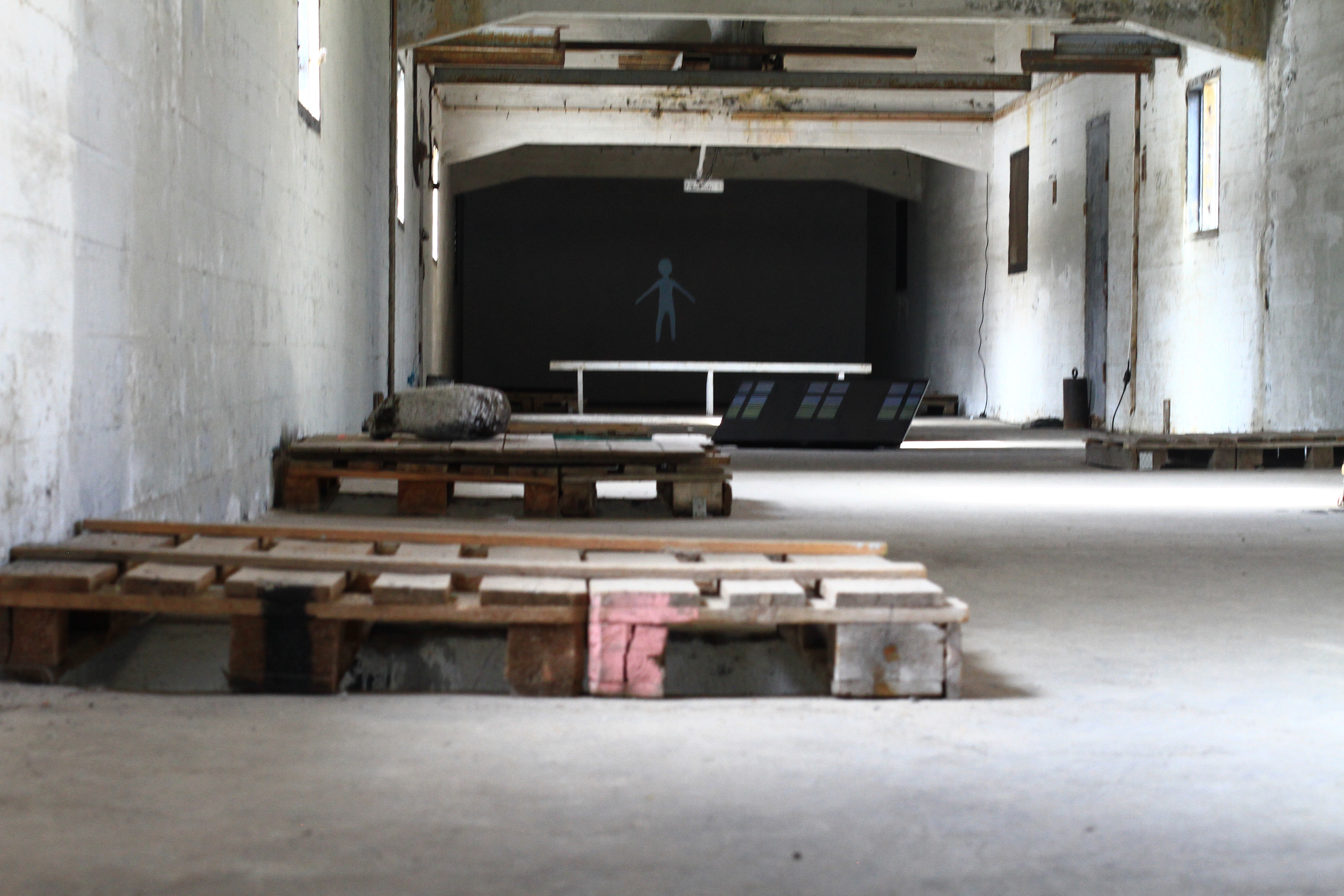 Axel goes on to tell me that the factory is supposedly haunted, and that when it was being built, one of the workers died while working their shift. Urban legend has it that the worker haunts the gallery in the form of detached rubber boots, wandering the space at night. Sometimes you can hear the boots squeaking, other times you see wet boot-prints on the concrete floors. Axel’s interest in the supernatural is a connecting theme in his work, and last month he visited Viðey to shoot a video outside the home of modernist poet Steinn Steinarr. Story has it that Steinn suffered from insomnia due to a ghost haunting him. A priest was called in and an exorcism was performed. The malevolent spirit was bound to a chair in the corner of the home, with a line of chalk drawn around it so that the ghost couldn't cross it. After this, Steinn didn’t have any problems sleeping. For this show Axel recreated aspects of the story via his signature use of the anti-aesthetic. In his video, the ghost has a bag on his head, and he describes it as “kind of stupid”.