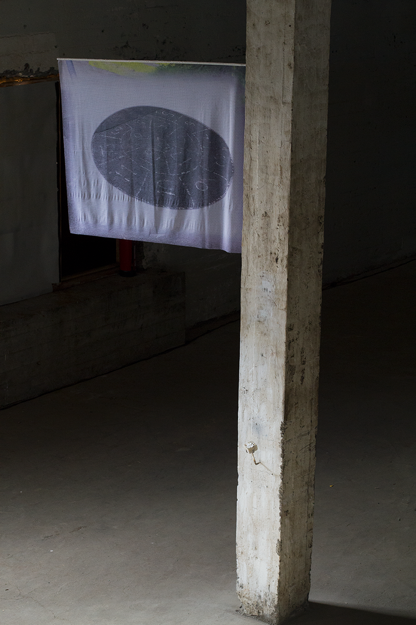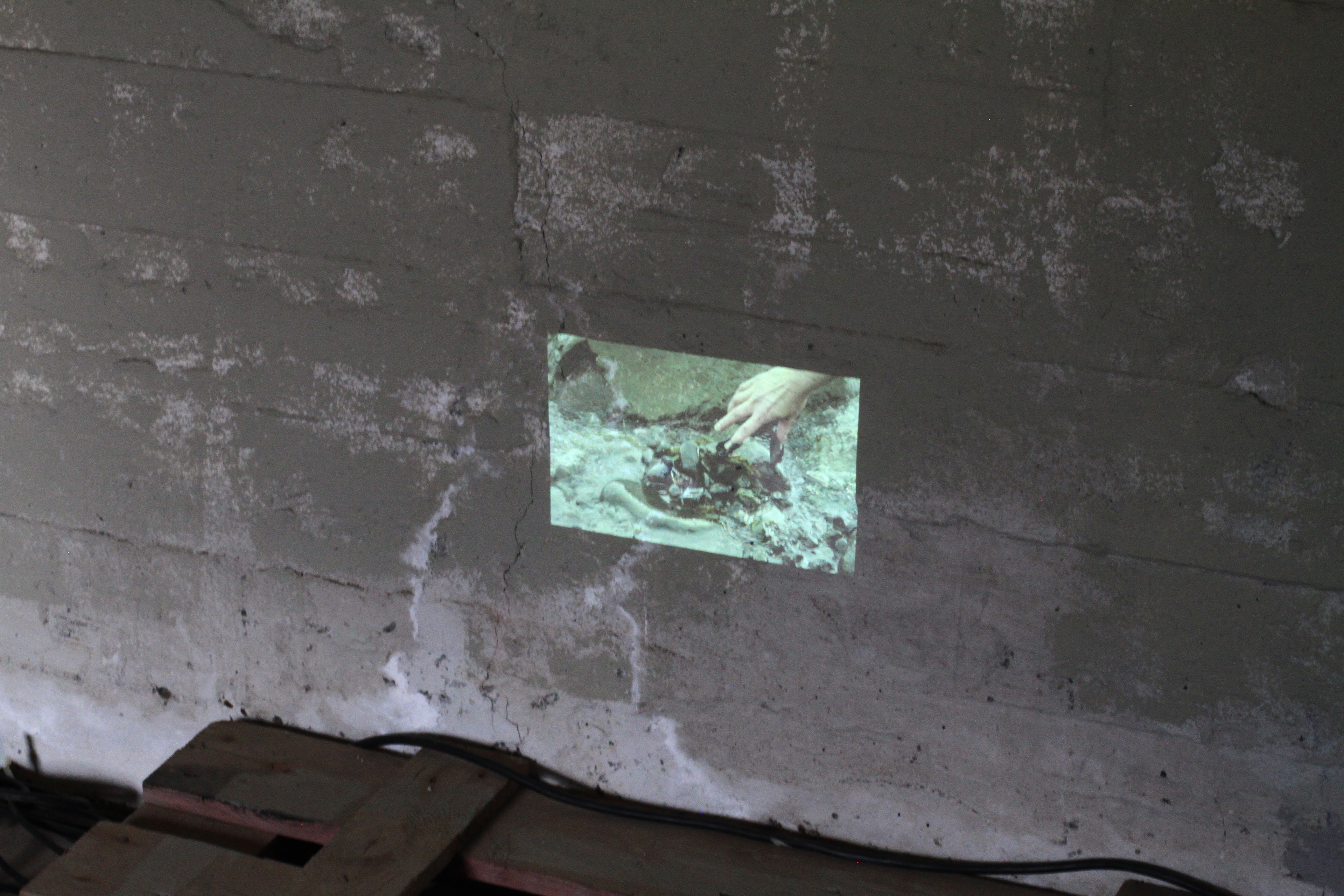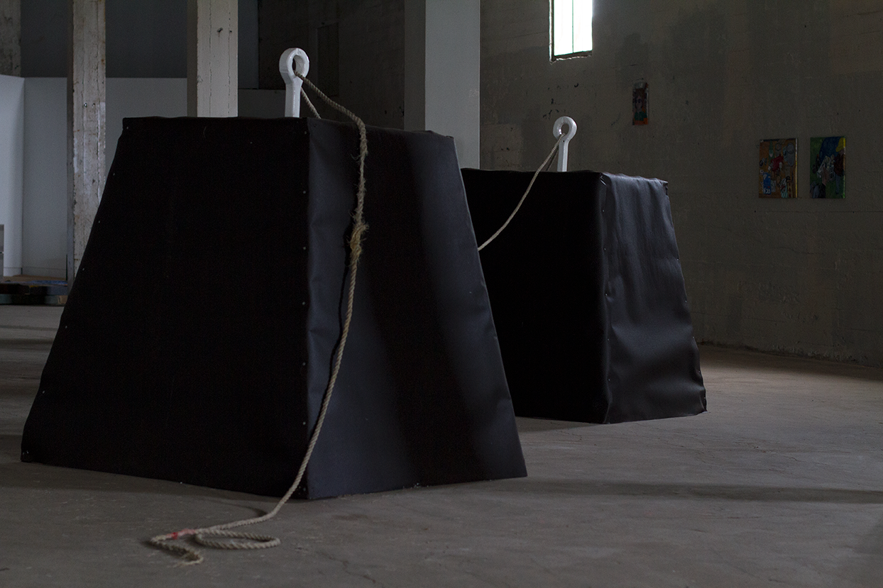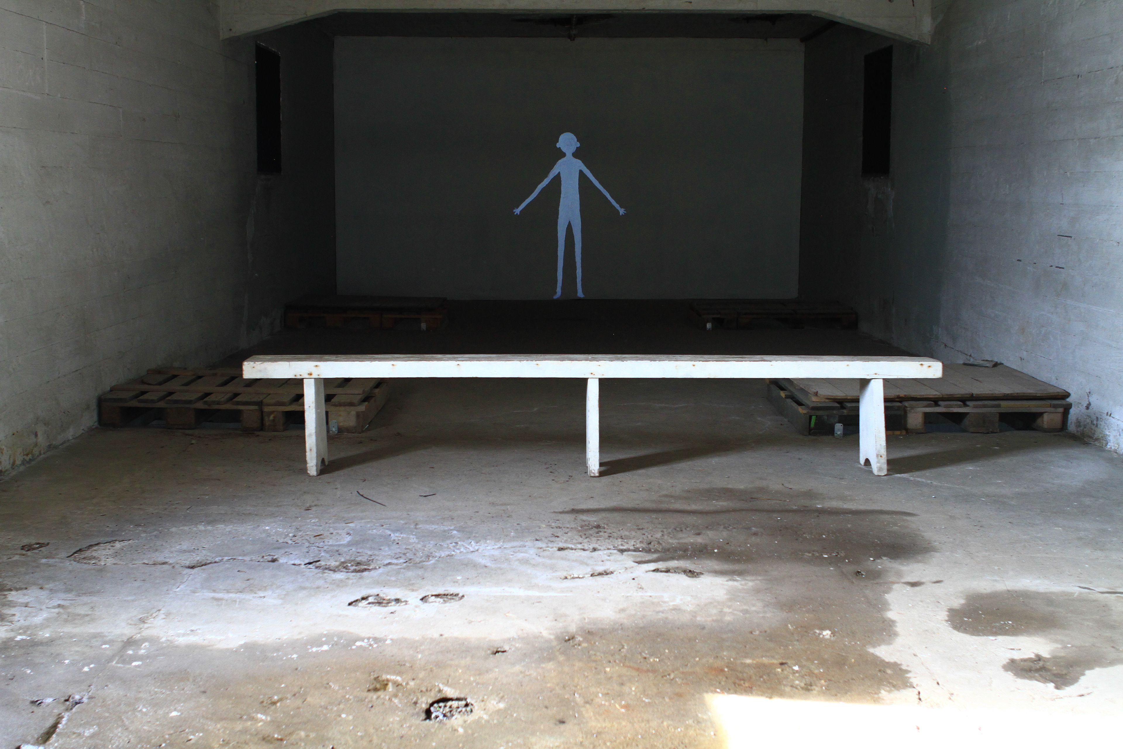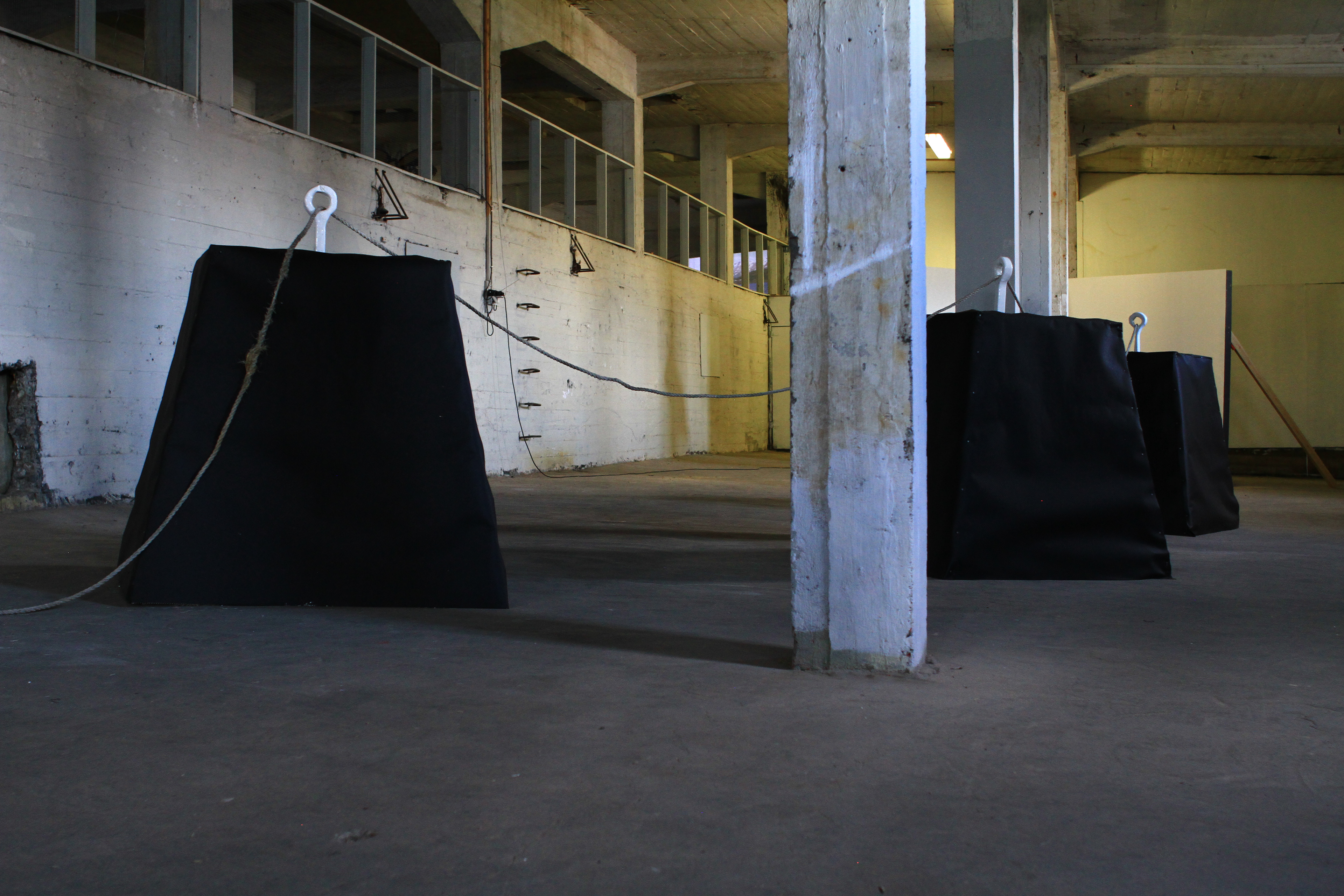 Axel goes on to tell me that the factory is supposedly haunted, and that when it was being built, one of the workers died while working their shift. Urban legend has it that the worker haunts the gallery in the form of detached rubber boots, wandering the space at night. Sometimes you can hear the boots squeaking, other times you see wet boot-prints on the concrete floors. Axel’s interest in the supernatural is a connecting theme in his work, and last month he visited Viðey to shoot a video outside the home of modernist poet Steinn Steinarr. Story has it that Steinn suffered from insomnia due to a ghost haunting him. A priest was called in and an exorcism was performed. The malevolent spirit was bound to a chair in the corner of the home, with a line of chalk drawn around it so that the ghost couldn't cross it. After this, Steinn didn’t have any problems sleeping. For this show Axel recreated aspects of the story via his signature use of the anti-aesthetic. In his video, the ghost has a bag on his head, and he describes it as “kind of stupid”.