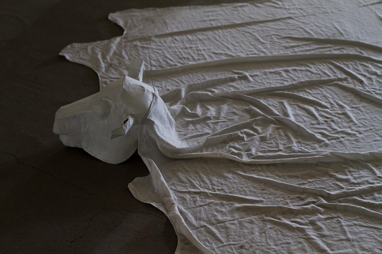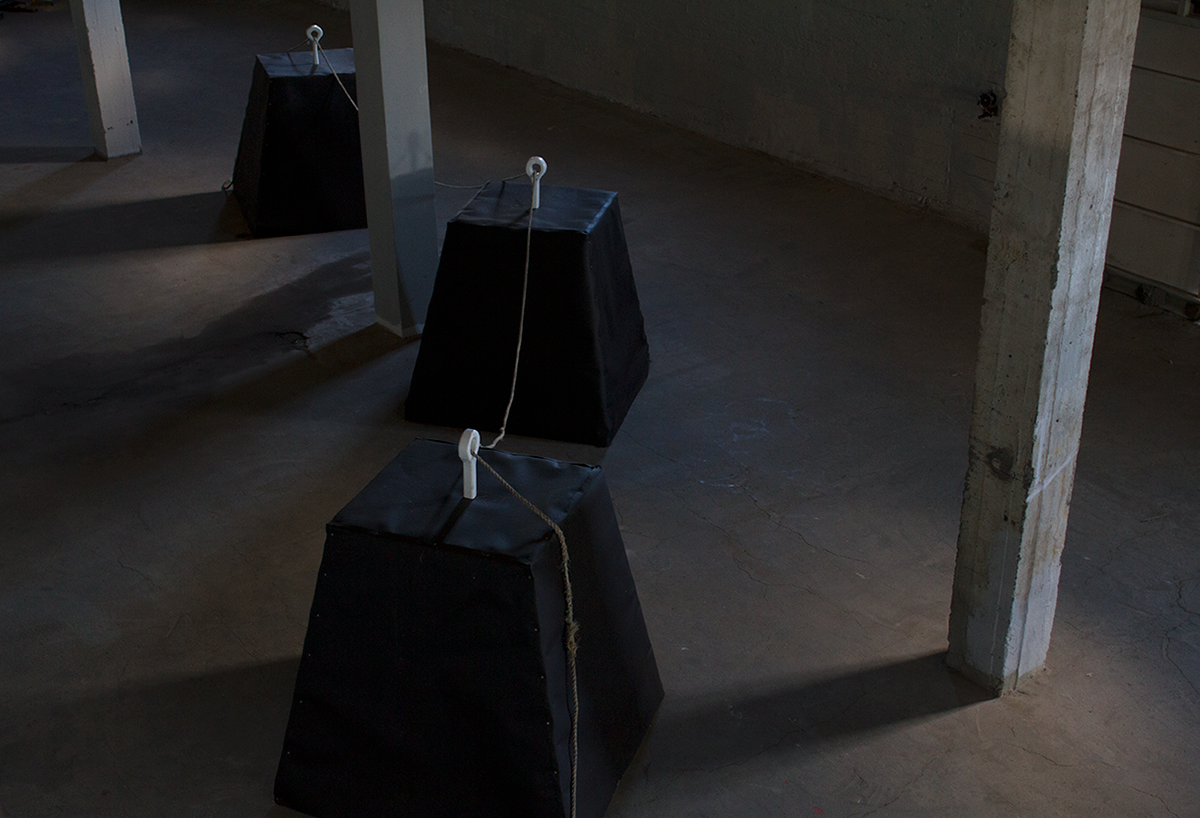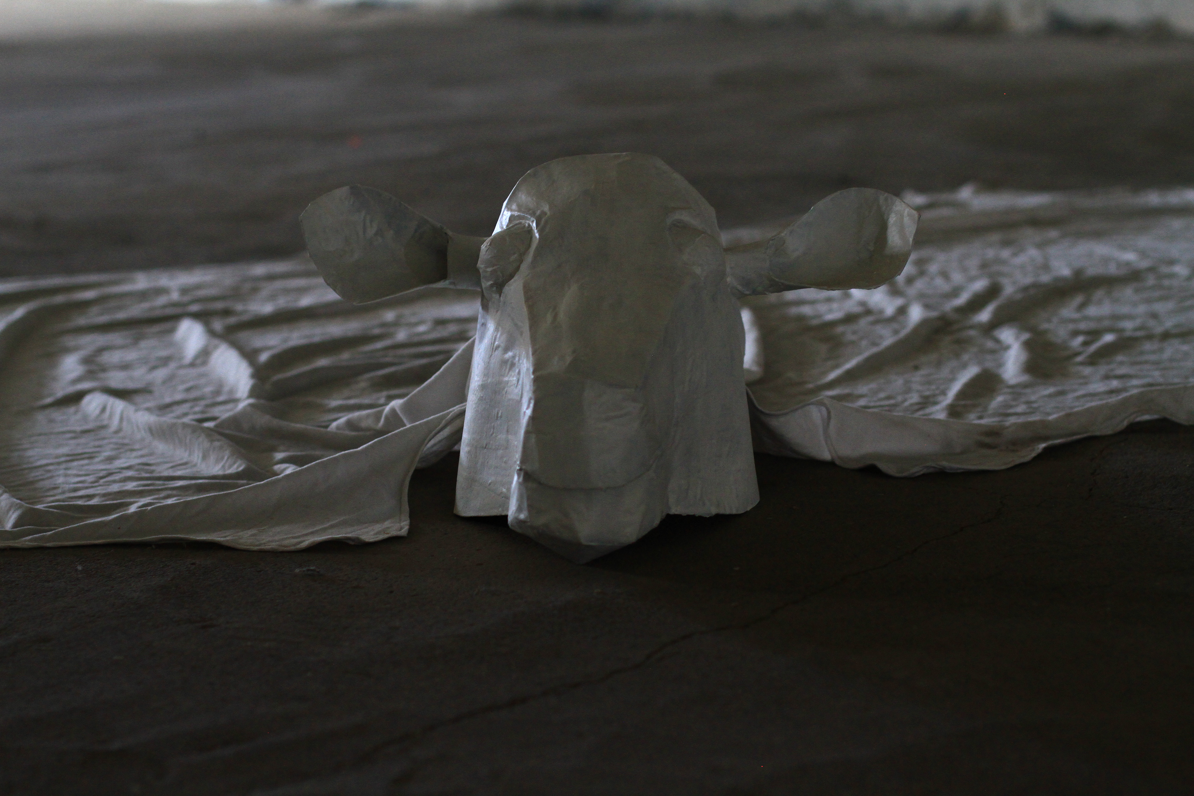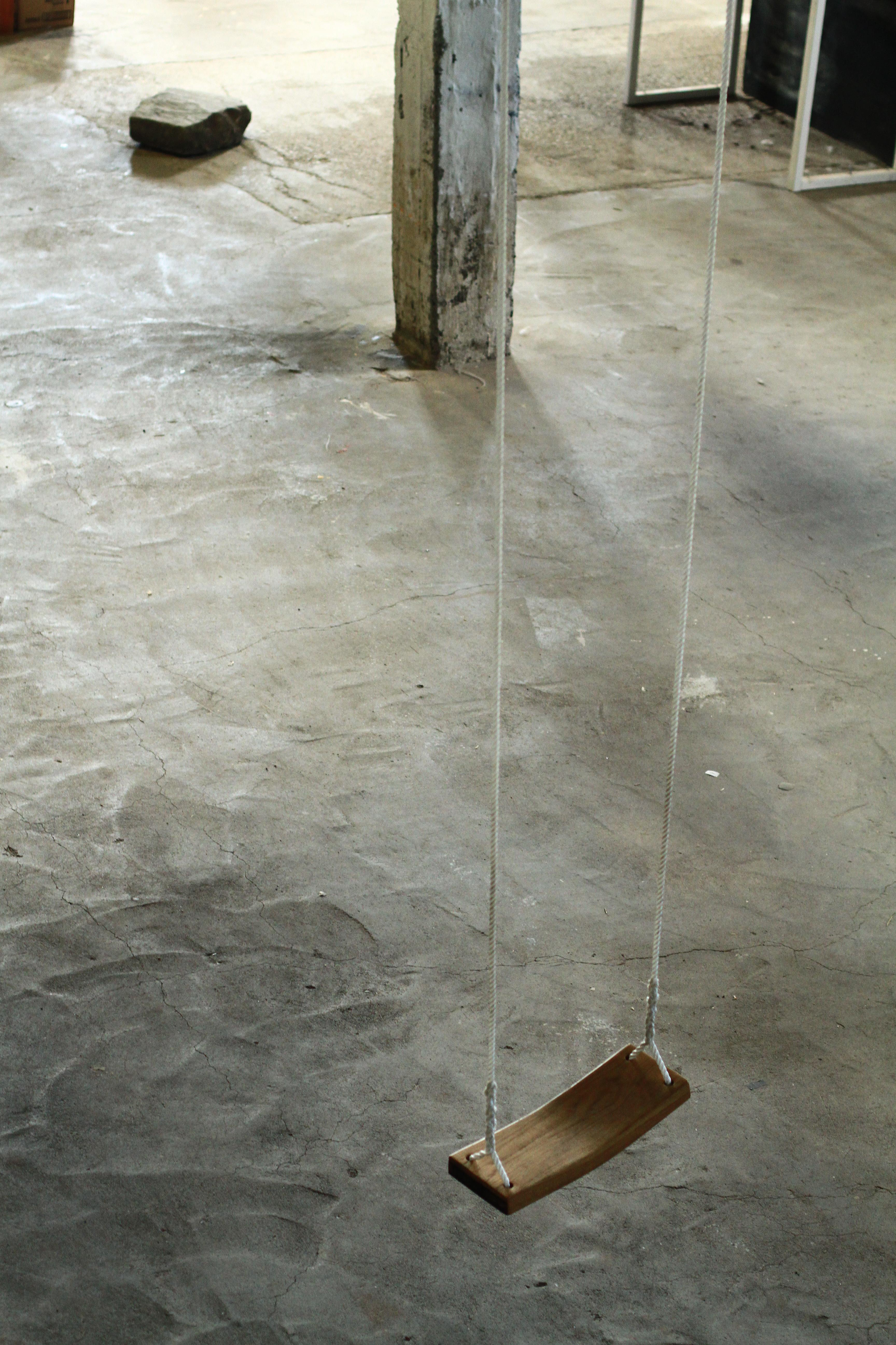 Axel goes on to tell me that the factory is supposedly haunted, and that when it was being built, one of the workers died while working their shift. Urban legend has it that the worker haunts the gallery in the form of detached rubber boots, wandering the space at night. Sometimes you can hear the boots squeaking, other times you see wet boot-prints on the concrete floors. Axel’s interest in the supernatural is a connecting theme in his work, and last month he visited Viðey to shoot a video outside the home of modernist poet Steinn Steinarr. Story has it that Steinn suffered from insomnia due to a ghost haunting him. A priest was called in and an exorcism was performed. The malevolent spirit was bound to a chair in the corner of the home, with a line of chalk drawn around it so that the ghost couldn't cross it. After this, Steinn didn’t have any problems sleeping. For this show Axel recreated aspects of the story via his signature use of the anti-aesthetic. In his video, the ghost has a bag on his head, and he describes it as “kind of stupid”.