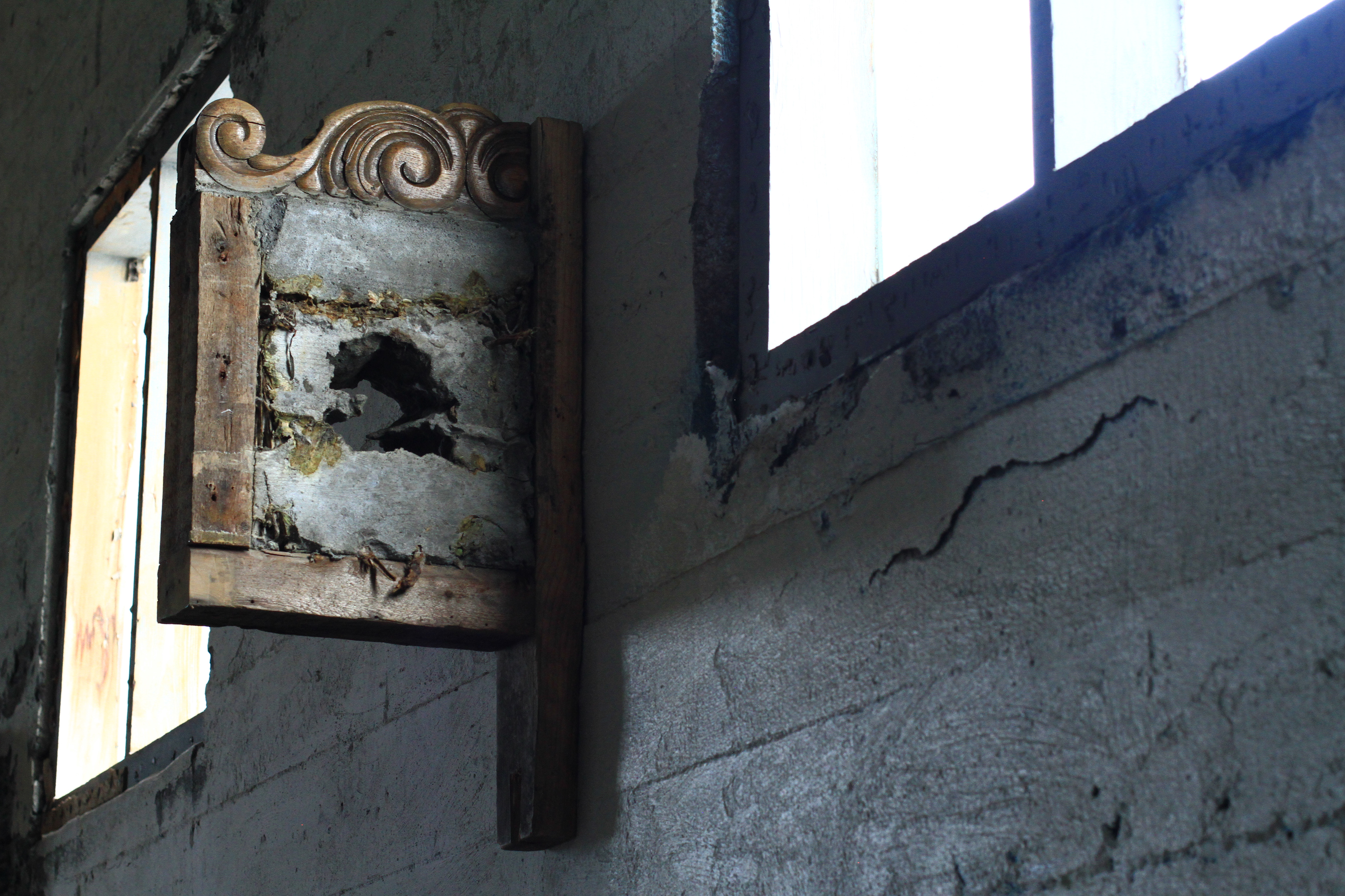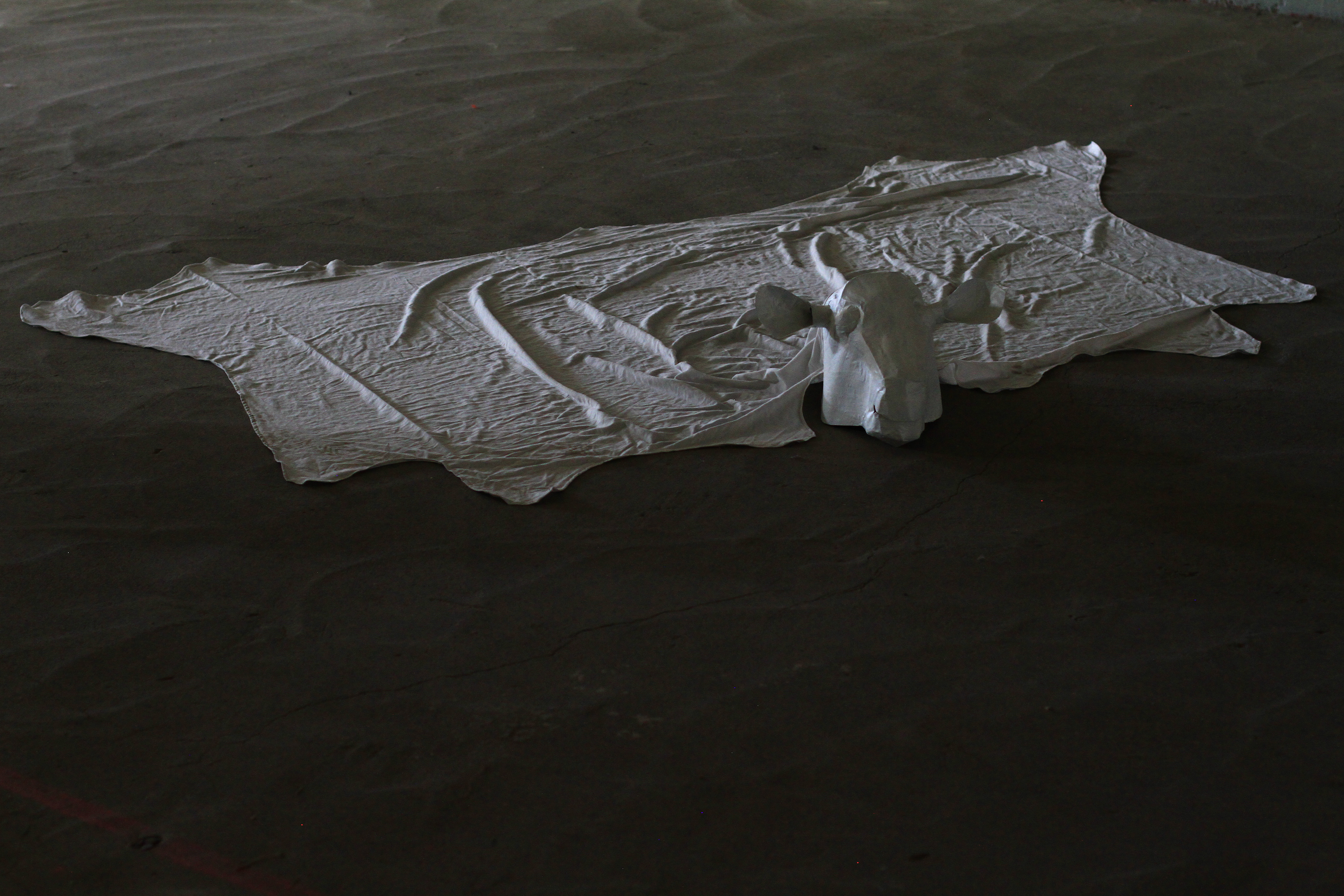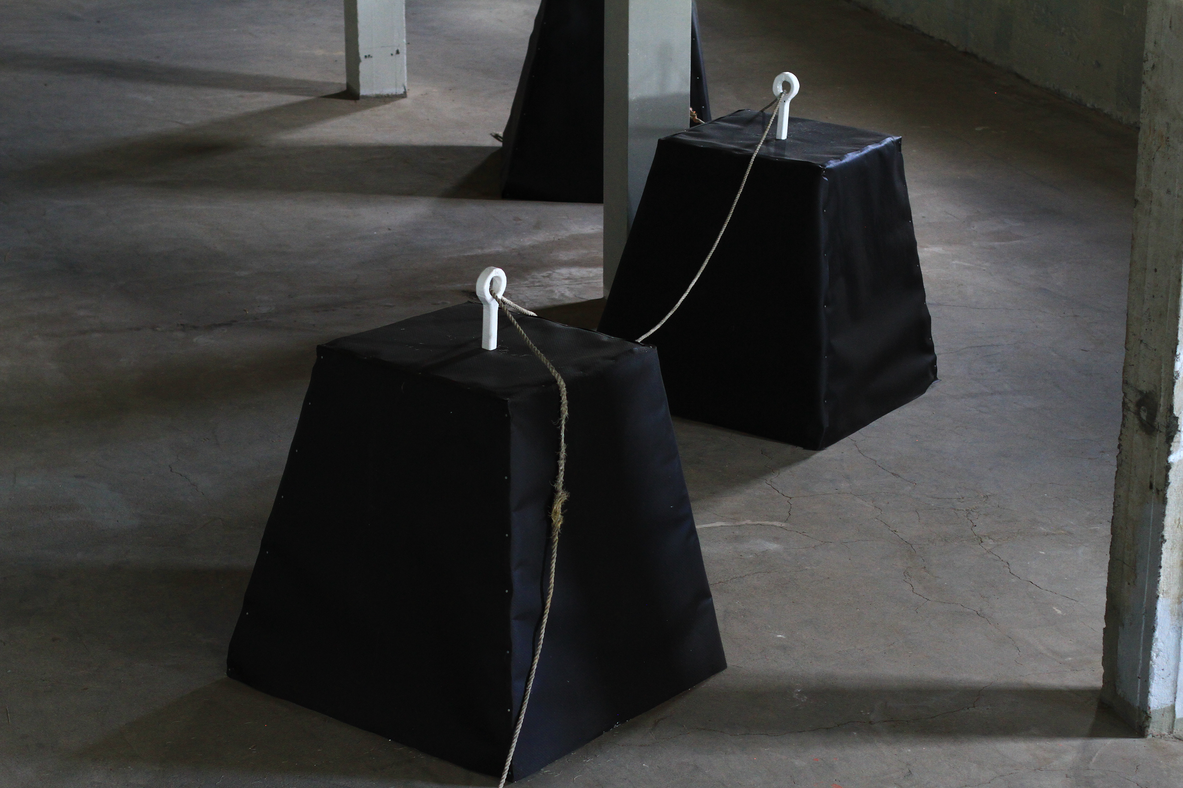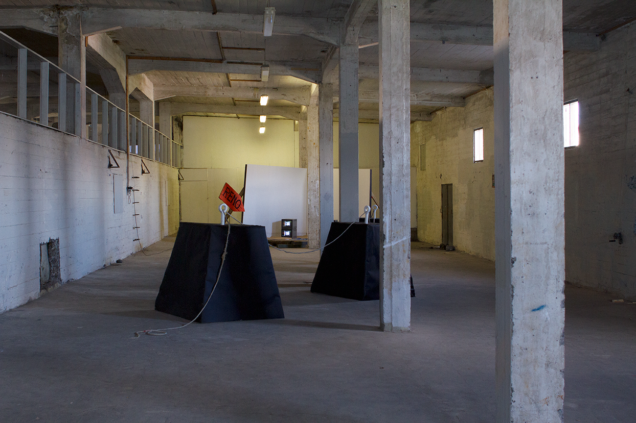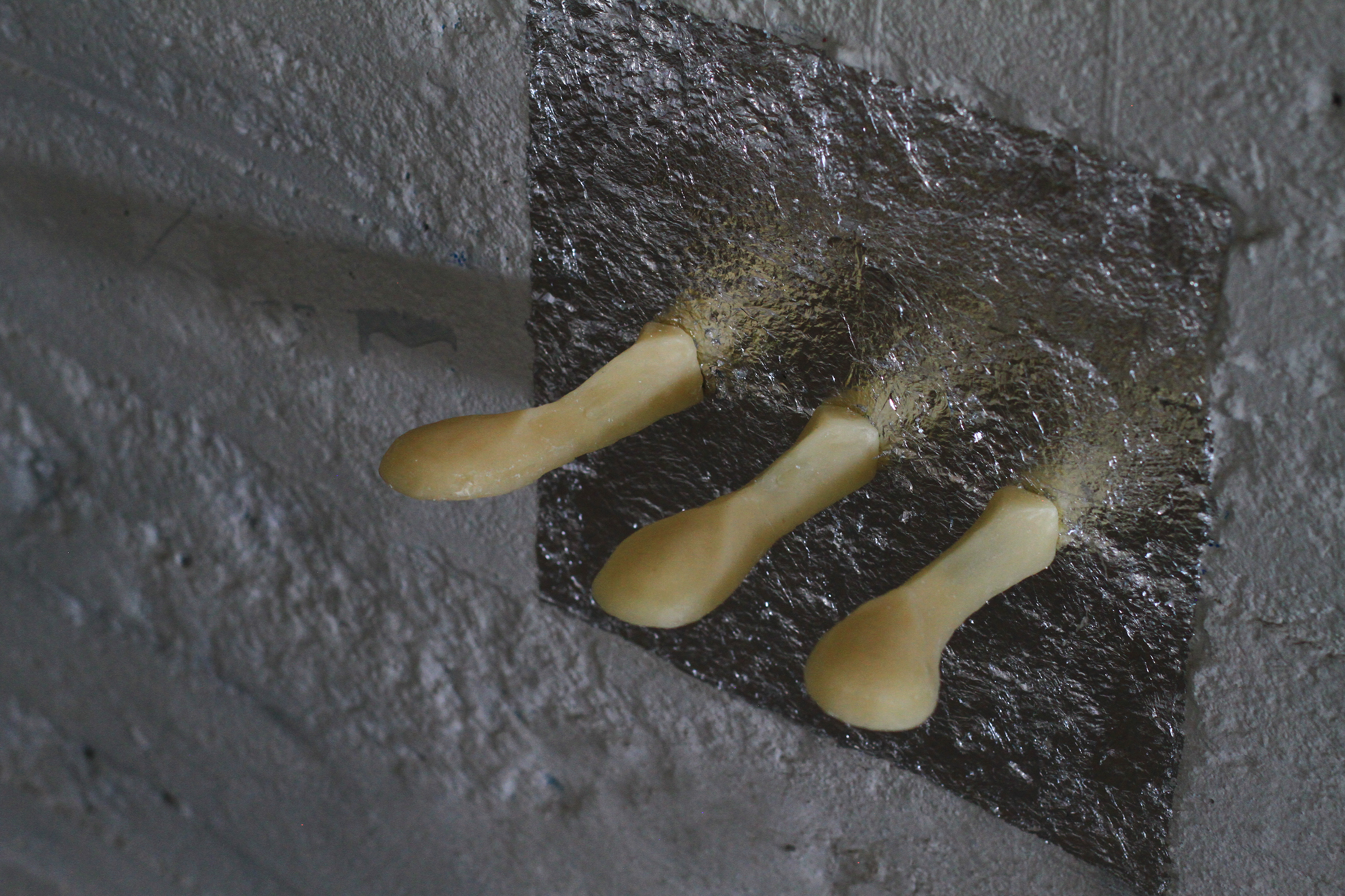 Axel goes on to tell me that the factory is supposedly haunted, and that when it was being built, one of the workers died while working their shift. Urban legend has it that the worker haunts the gallery in the form of detached rubber boots, wandering the space at night. Sometimes you can hear the boots squeaking, other times you see wet boot-prints on the concrete floors. Axel’s interest in the supernatural is a connecting theme in his work, and last month he visited Viðey to shoot a video outside the home of modernist poet Steinn Steinarr. Story has it that Steinn suffered from insomnia due to a ghost haunting him. A priest was called in and an exorcism was performed. The malevolent spirit was bound to a chair in the corner of the home, with a line of chalk drawn around it so that the ghost couldn't cross it. After this, Steinn didn’t have any problems sleeping. For this show Axel recreated aspects of the story via his signature use of the anti-aesthetic. In his video, the ghost has a bag on his head, and he describes it as “kind of stupid”.