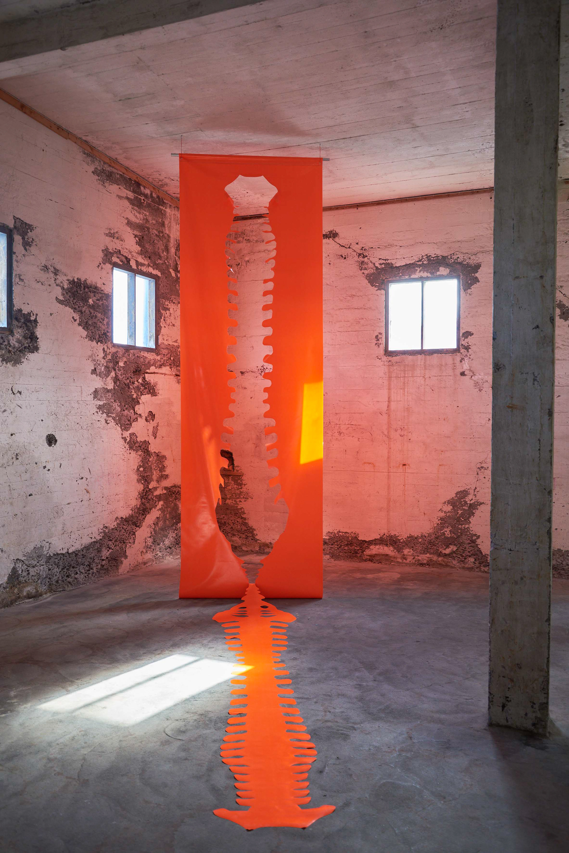 The exhibition Hverfing/Shapeshifting brings together renowned artists from Iceland and the United States to create site-specific installations specifically for the interior spaces of the Verksmiðjan building, a former herring oil factory at the beautiful location of Hjalteyri in the north of Iceland. The factory, its history, and its proximity to the sea and nature serve as the reference for the newly created works by the artists, who address themes of cultural and natural values.